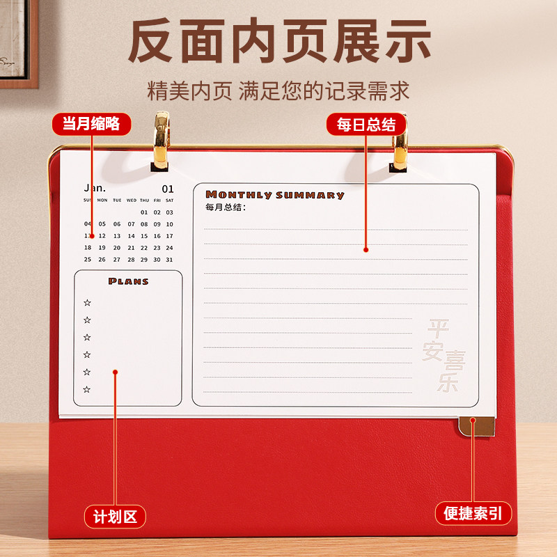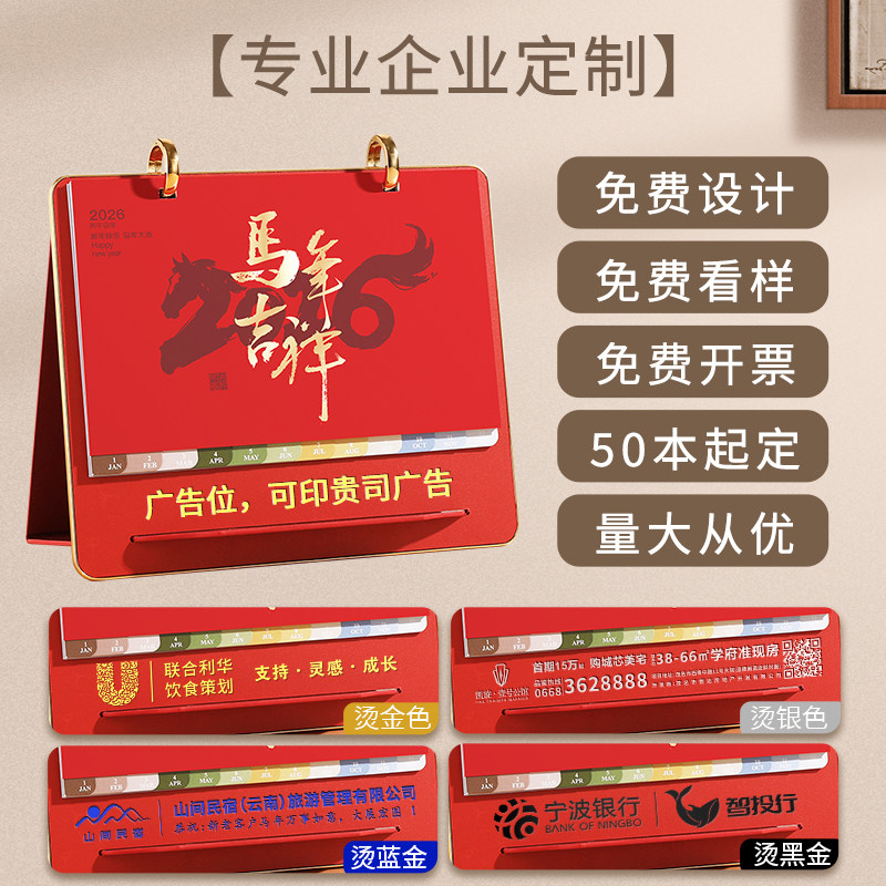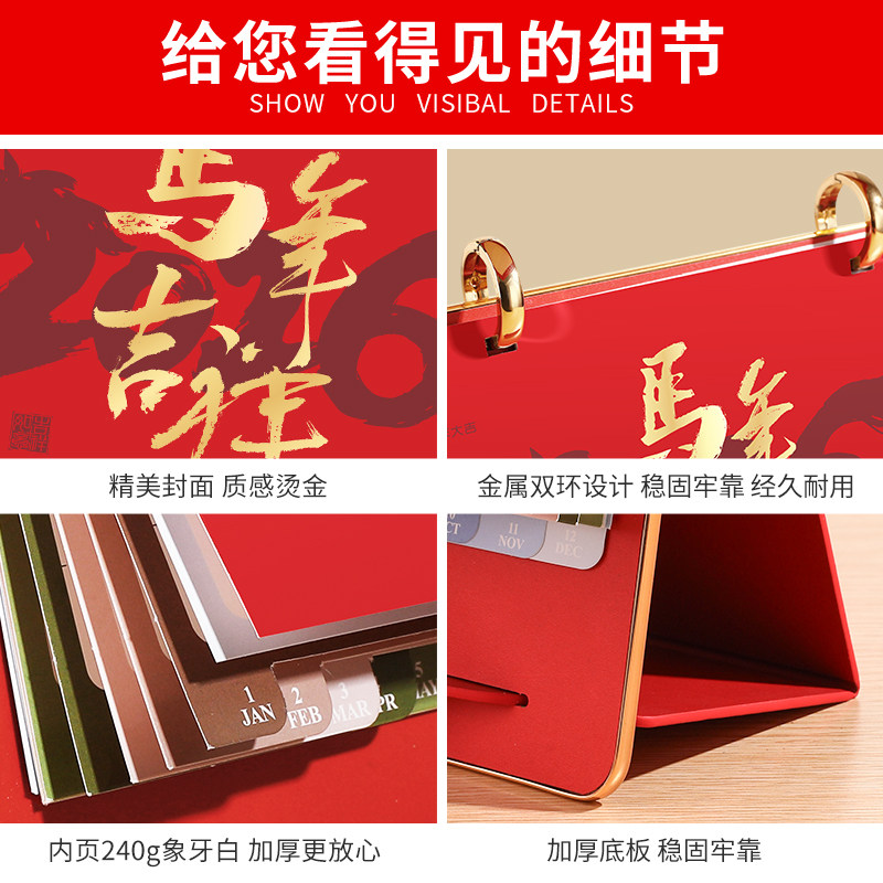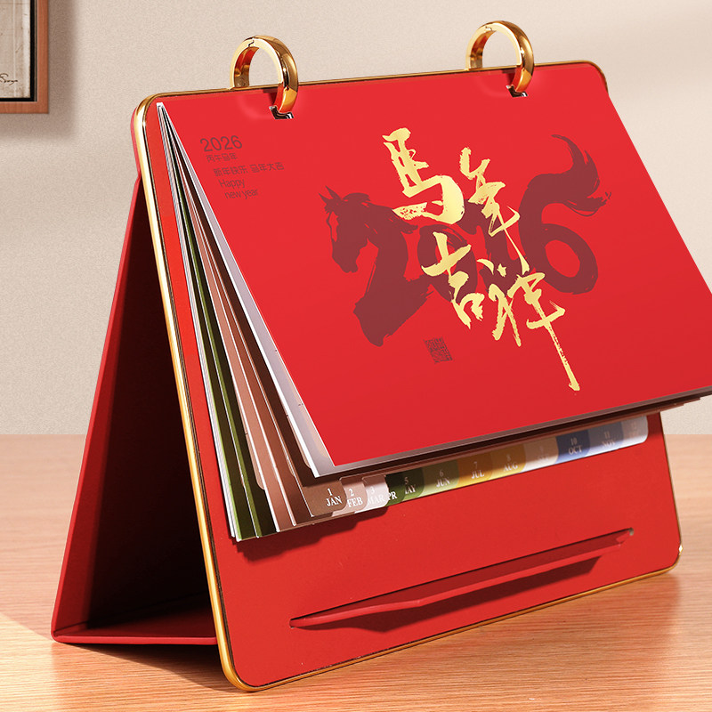 台历2026年双环皮架支架年历马年商务桌面简约摆件打卡记事备忘录翻页月历新年公司广告logo定制日历本送礼品