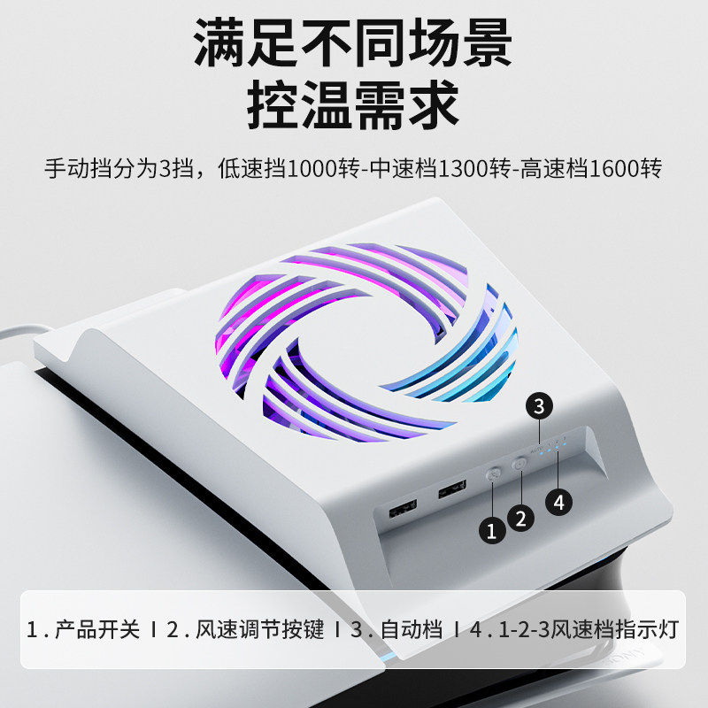 AOLION澳加狮 PS5 Slim/Pro专用散热风扇数字版光驱版通用主机散热冷却智能温控带3档转速降温带灯效PS5配件
