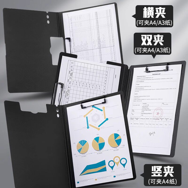 A4文件夹加厚板夹资料夹活页收纳双夹多功能纸夹板夹写字板书文具本夹子办公用品小学生专用试卷整理神器档案