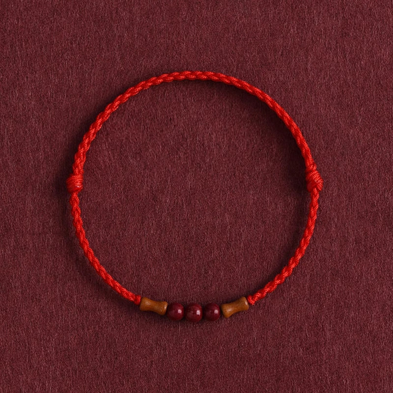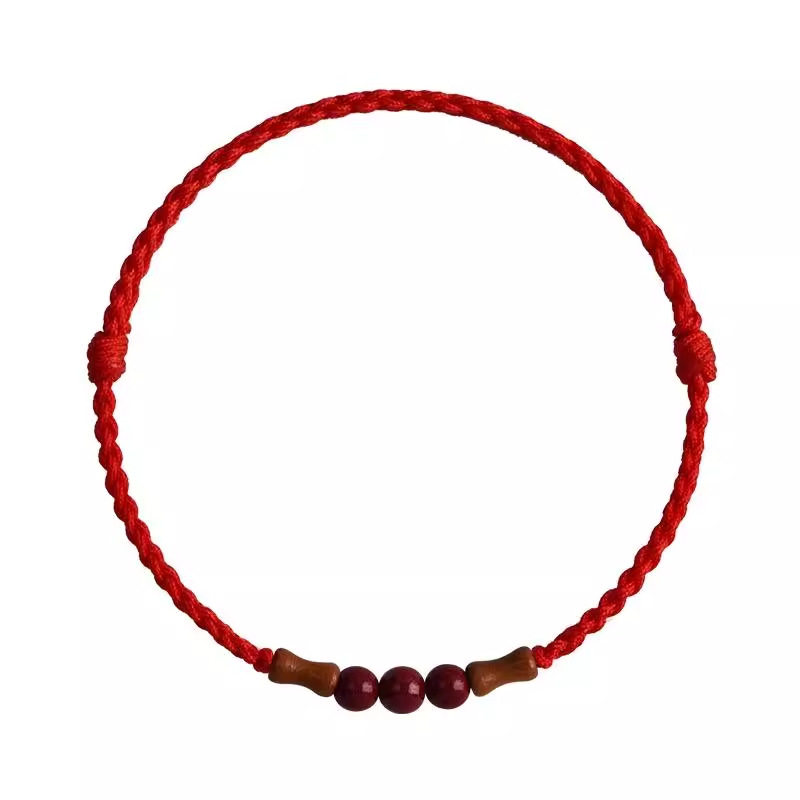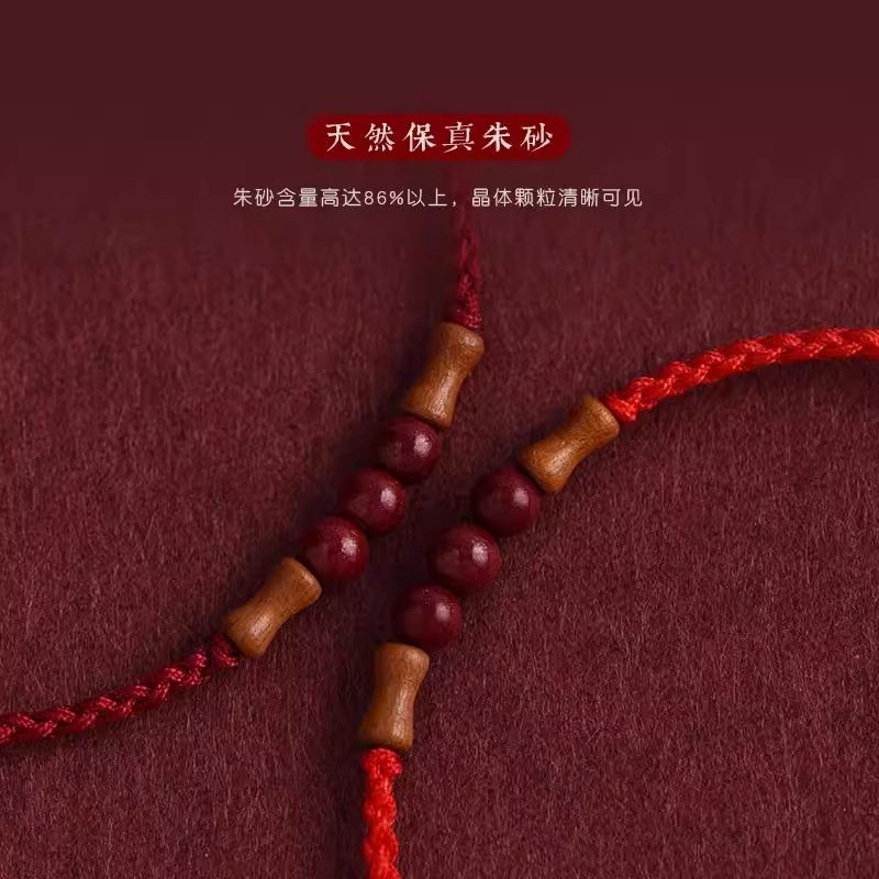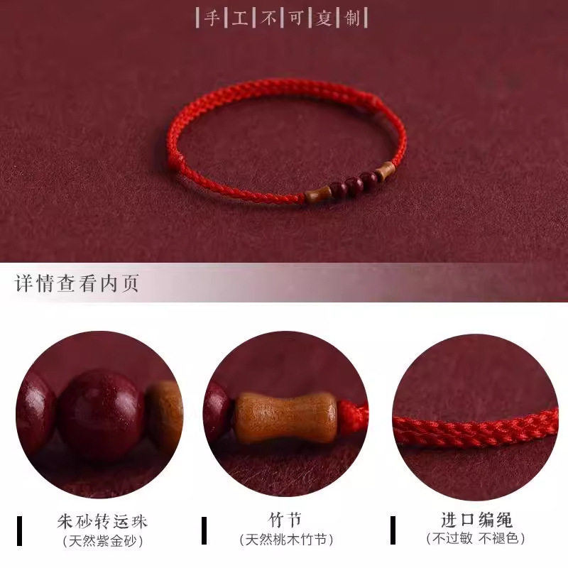 节节高升天然桃木竹节红绳手链脚链男女朱砂转运珠本命年编织手绳