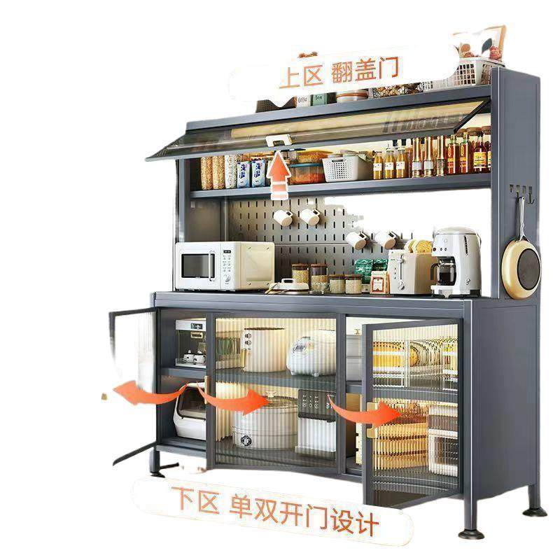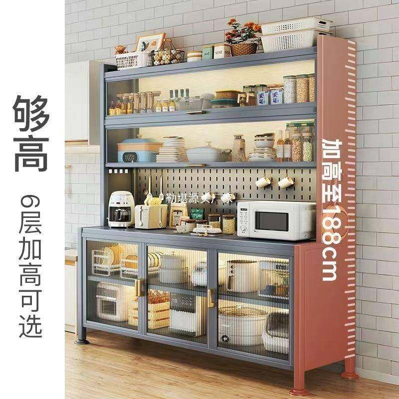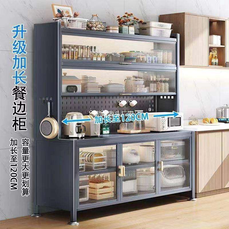 厨房封闭置物架加长落地多层铁艺餐边柜多功能收纳碗碟锅具储物柜