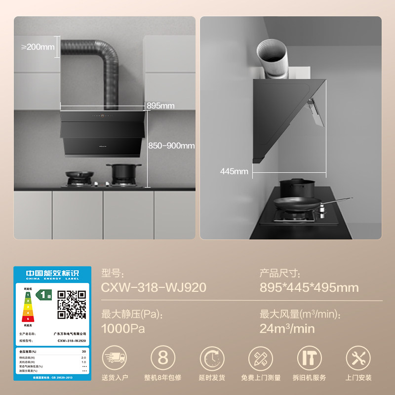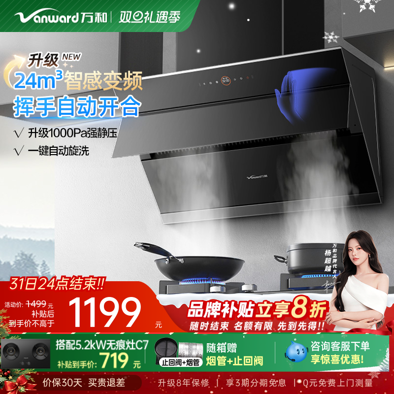 [政府补贴]万和家用厨房抽油烟机大吸力变频吸油烟机WJ920
