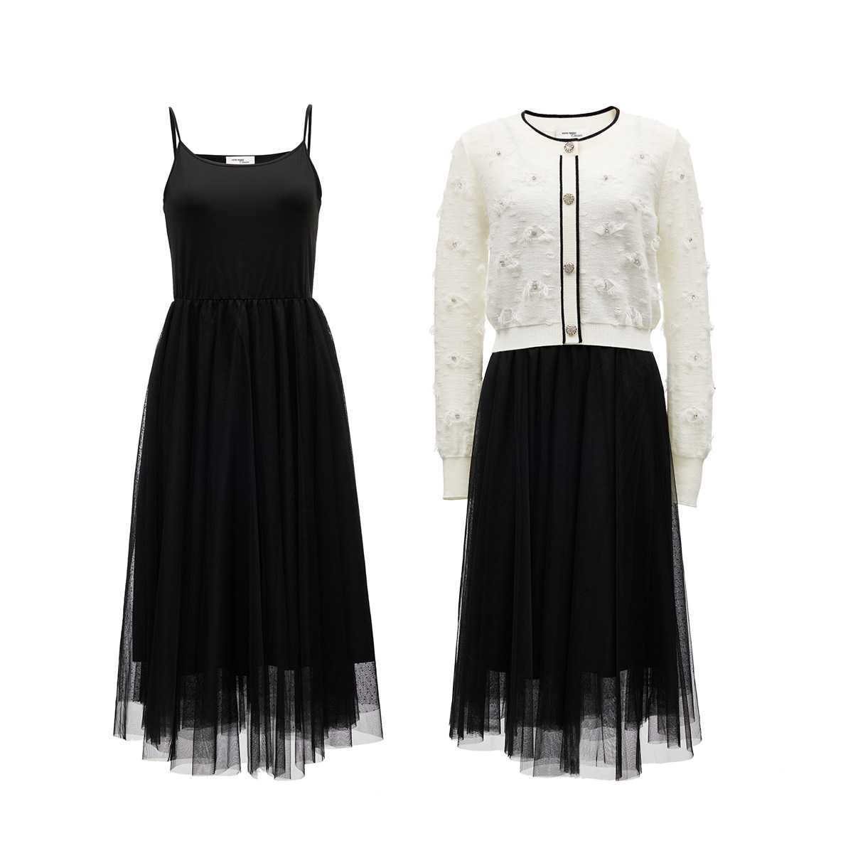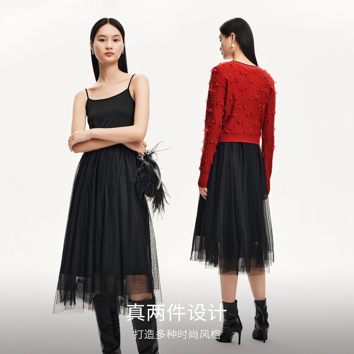 Vero Moda奥莱连衣裙秋冬新款两件网纱吊带裙小香风针织外套流行