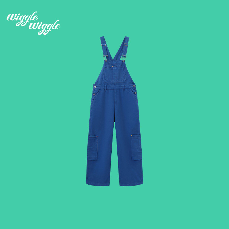 【齐思钧同款】wigglewiggle爱心熊牛仔裤撞色直筒阔腿裤背带裤女