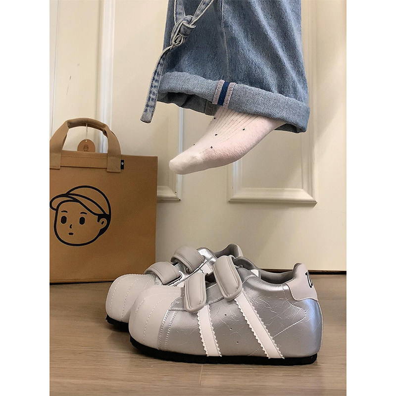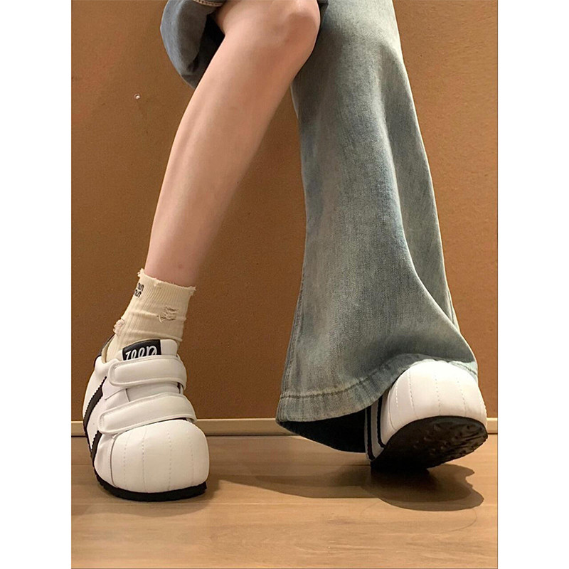 2026夏季新款真皮德训鞋女魔术贴内增高厚底丑萌大头鞋运动休闲鞋