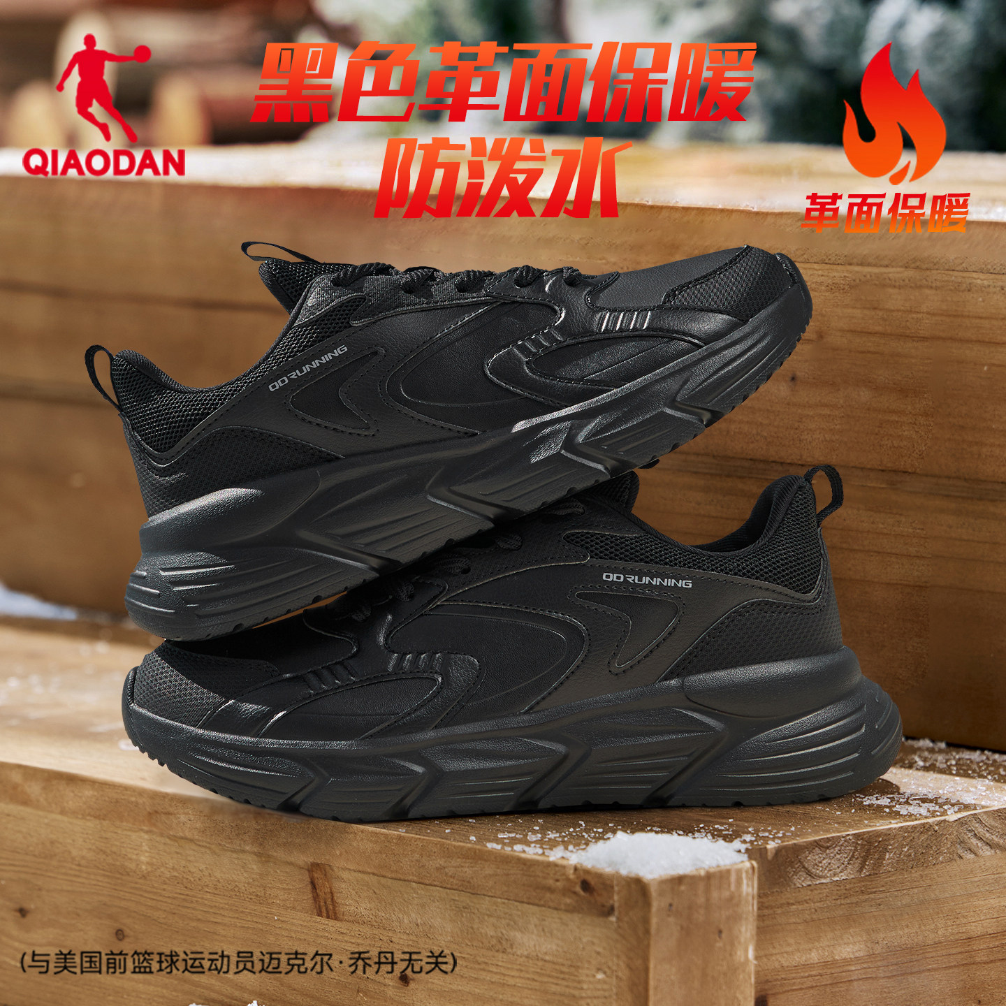 乔丹冬季皮面加绒防水运动鞋男鞋跑步鞋减震轻便软底黑色爸爸跑鞋