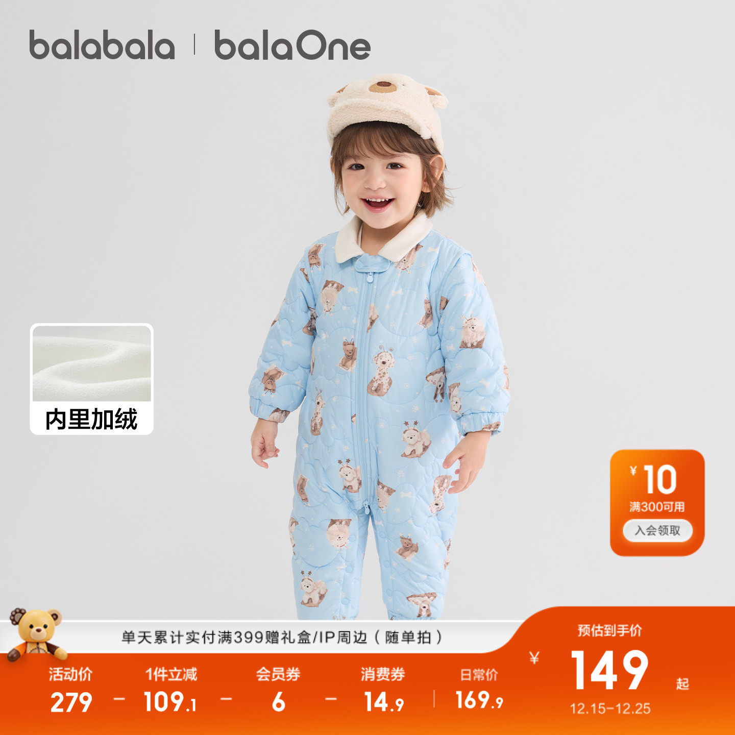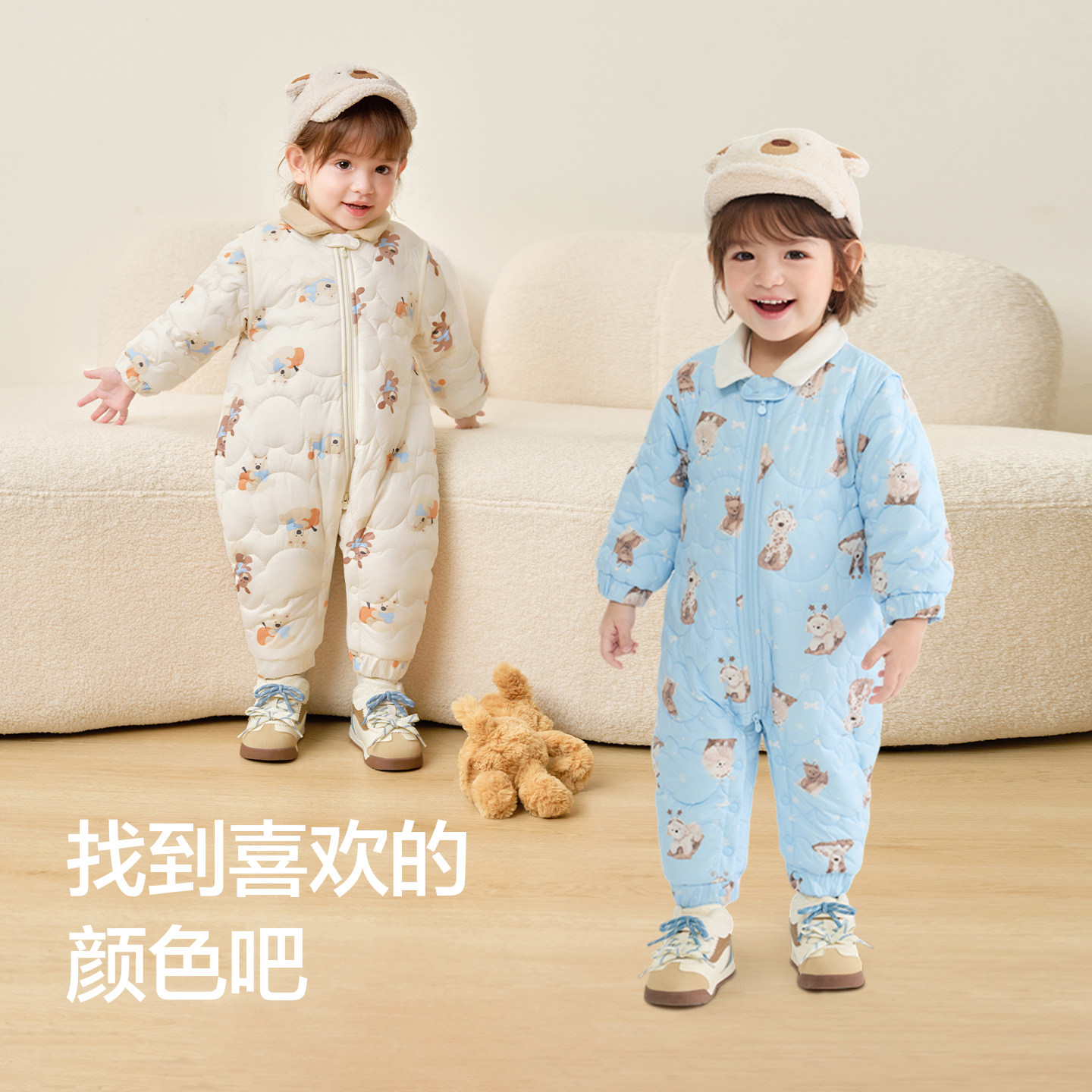 巴拉巴拉童装连体衣新生婴儿衣服宝宝冬装2025新加厚夹棉哈衣爬服