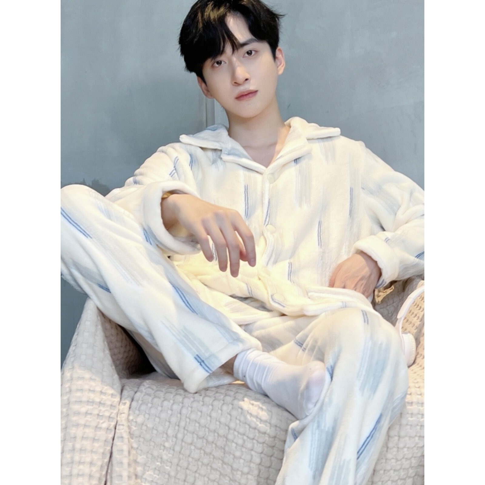 男士睡衣冬季珊瑚绒三层夹棉加厚加绒男款青少年2025年新款家居服