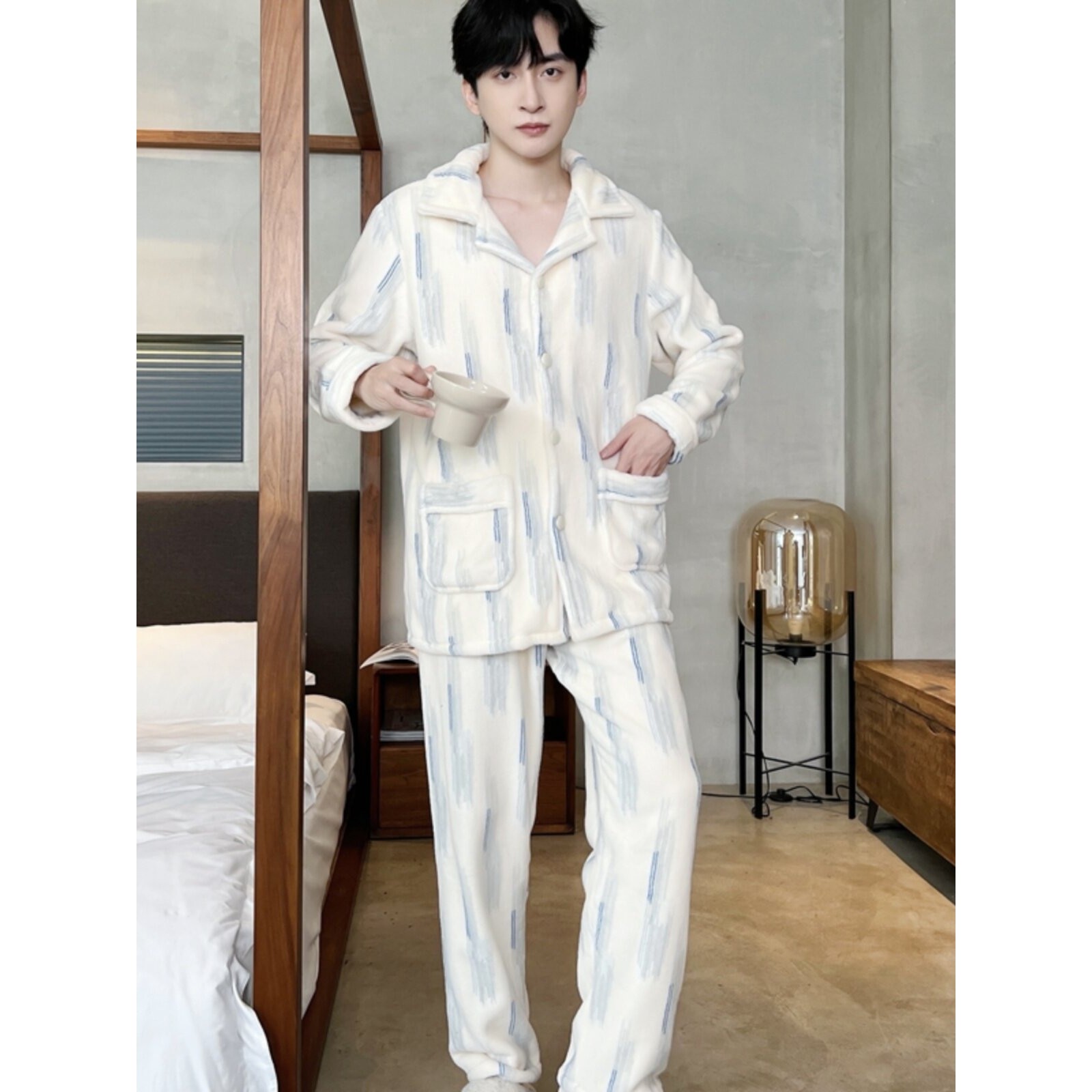 2025新款珊瑚绒睡衣男士冬季加厚加绒法兰绒秋冬款套头男款家居服