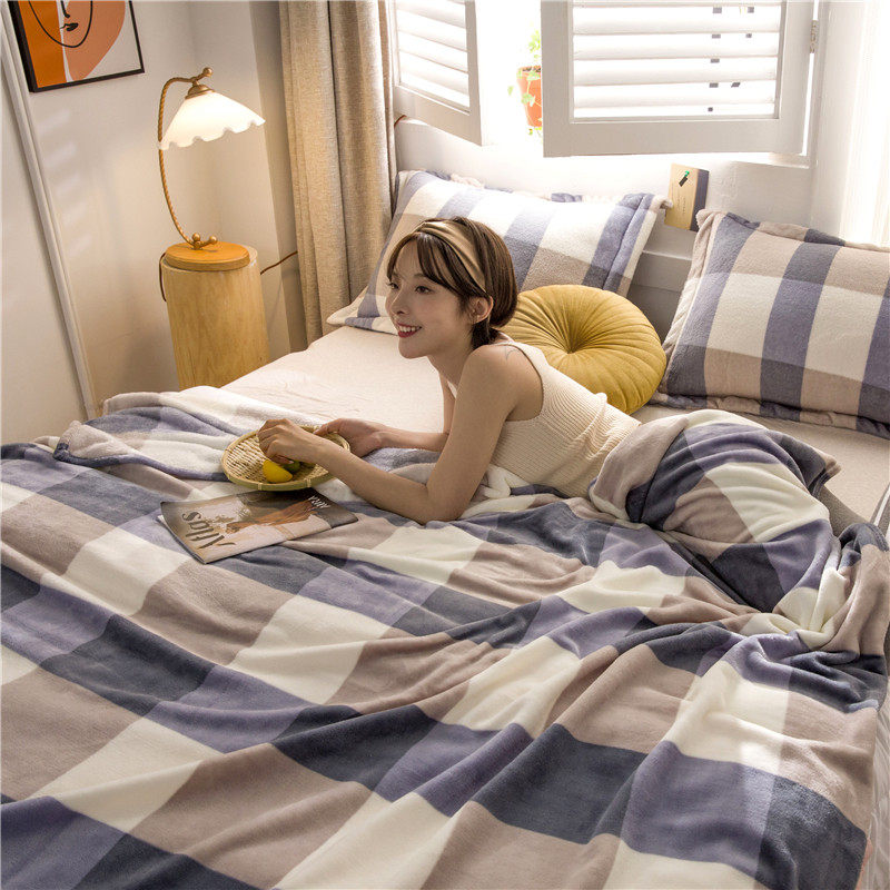 A类牛奶绒毛毯冬季盖毯可机洗单人宿舍毯披肩午睡毯双面绒床单厚
