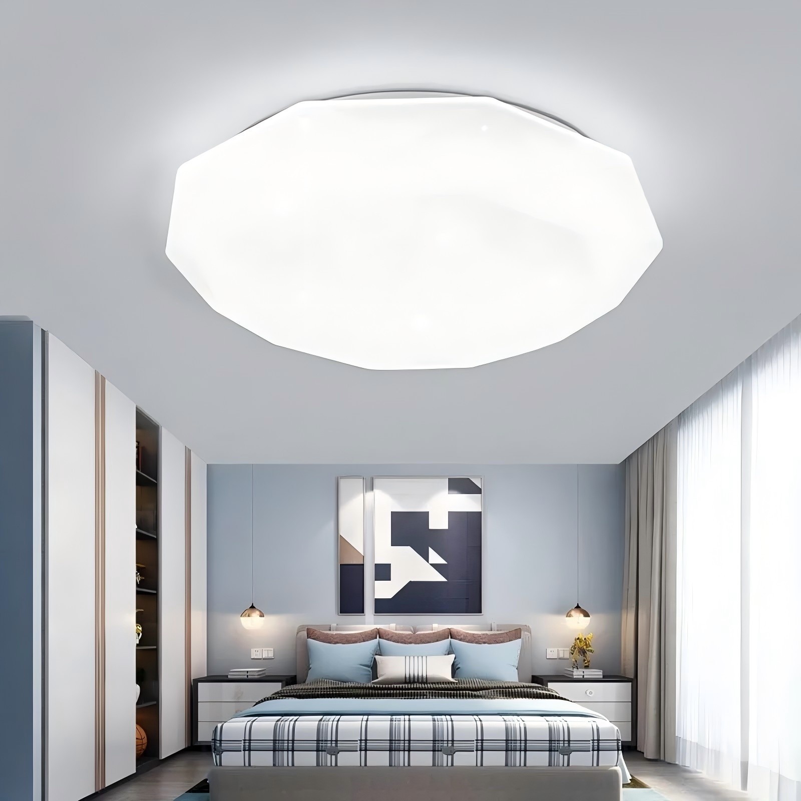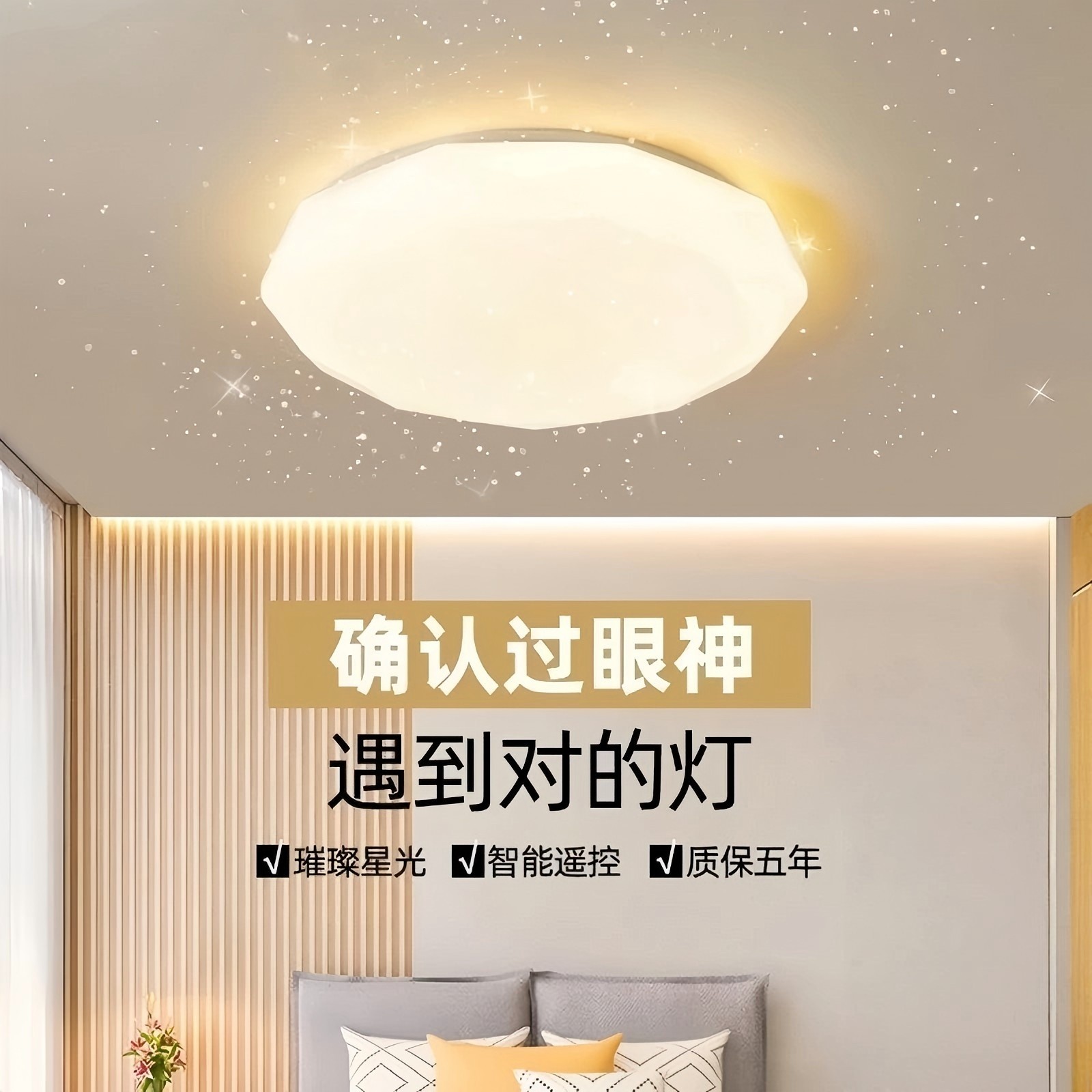 led全光谱钻石圆形卧室灯吸顶灯家用遥控智能天猫精灵节能灯过道