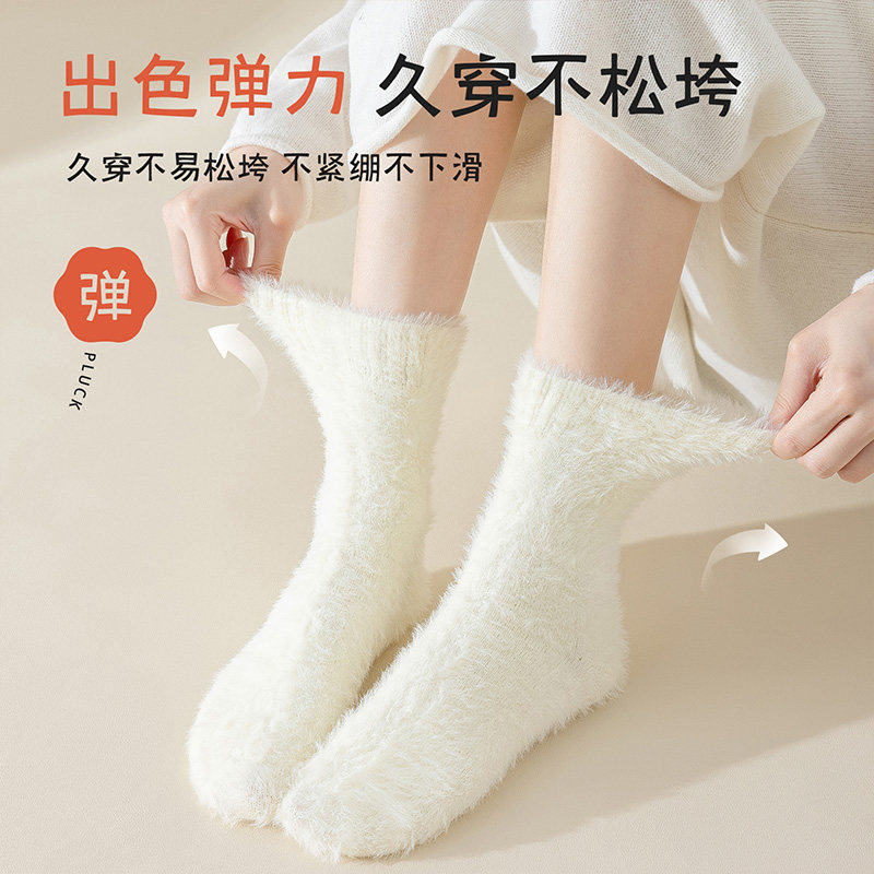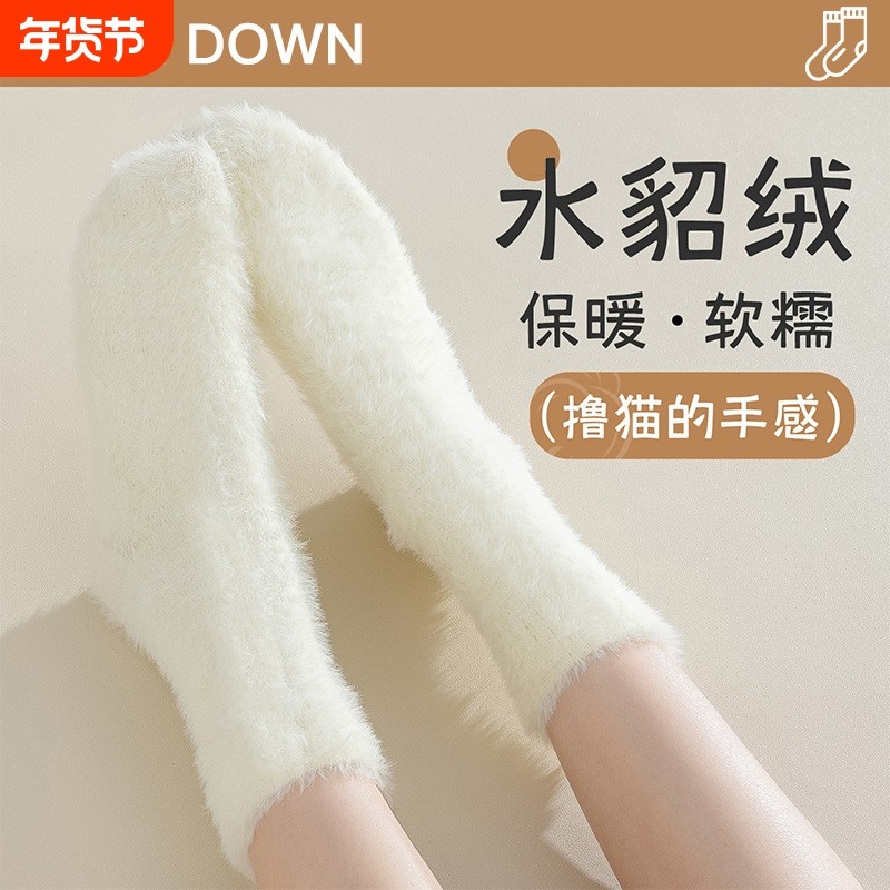 袜子女款2025新款爆款冬季中筒袜加厚加绒保暖睡眠袜长袜水貂绒