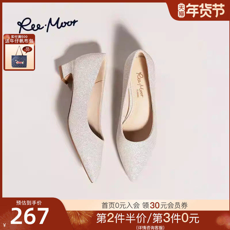 REEMOOR睿慕2025秋季新款女粗跟仙女风跟鞋浅口单鞋气质尖头女鞋