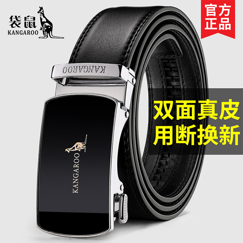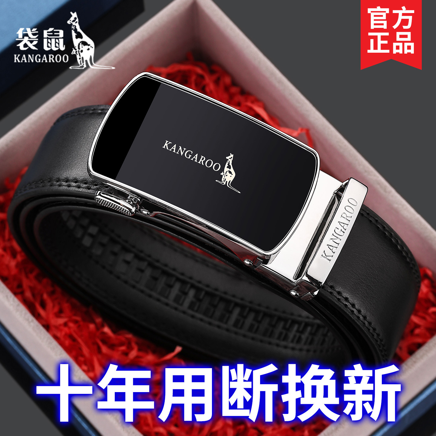 袋鼠牛皮皮带男款2025新款自动扣黑色商务裤腰带真皮男士腰带名牌