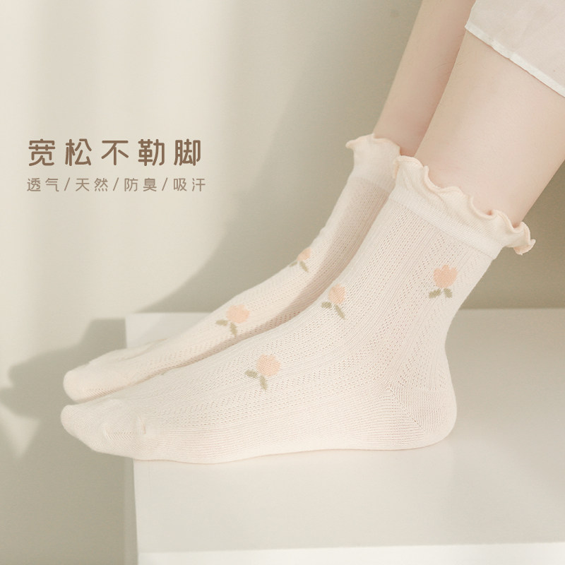 袜子女款纯棉中筒袜秋冬季抗菌防臭吸汗运动棉袜春秋款无骨短筒袜