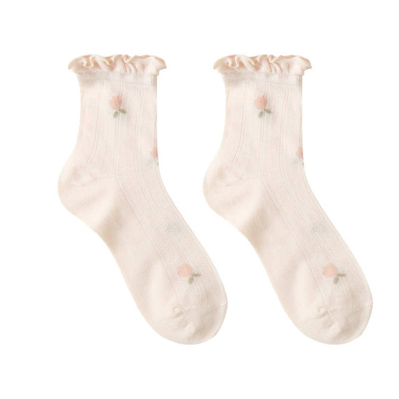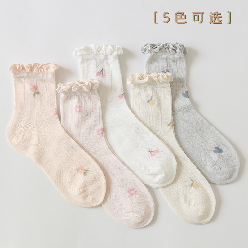 月子袜子女孕妇产后春秋中筒袜花边纯棉软糯无骨松口不勒产妇长袜