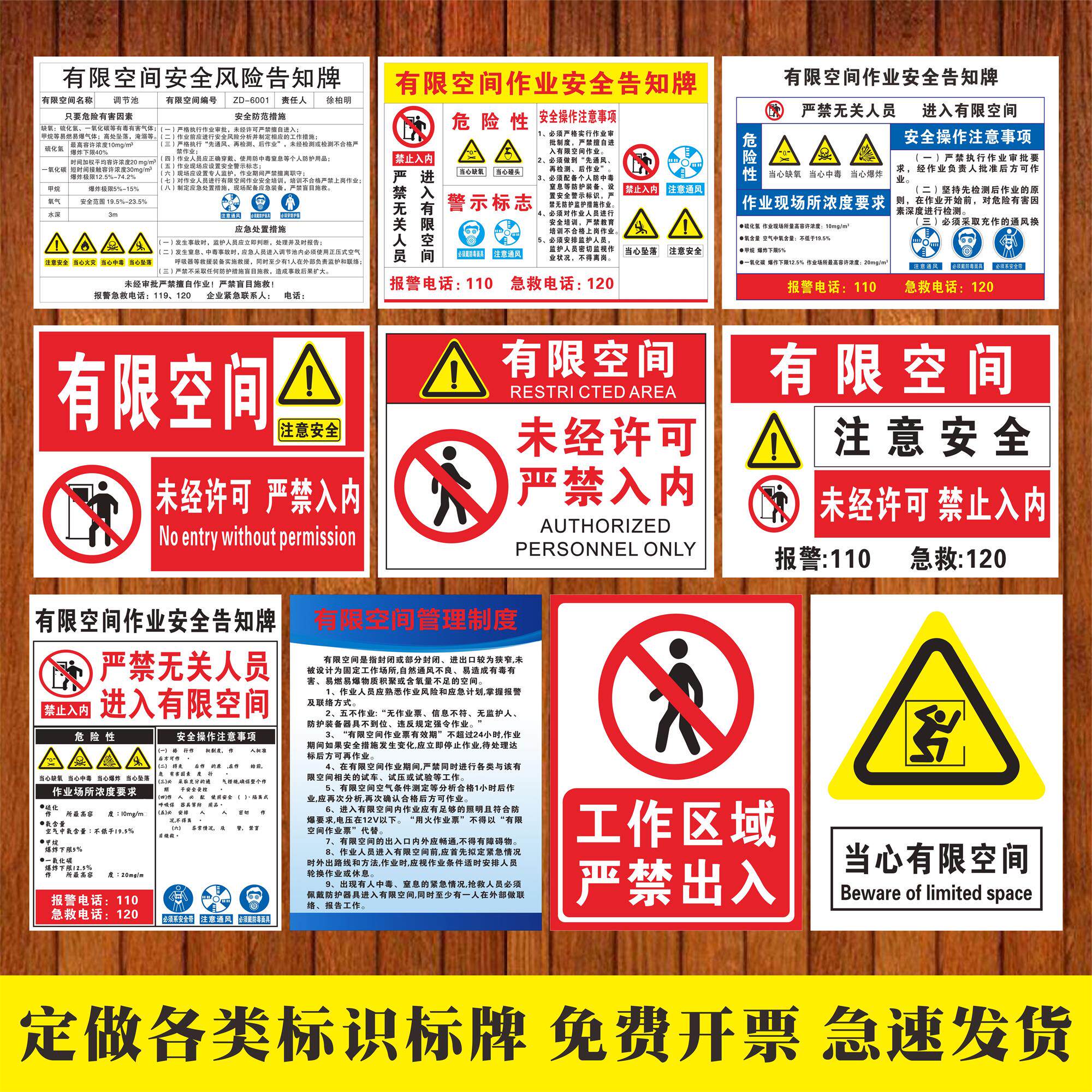 有限空间安全作业操作规程管理制度牌受限空间安全风险源告知牌工作区域未经许可非相关工作人员禁止入内标识