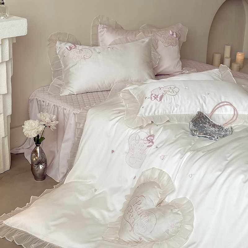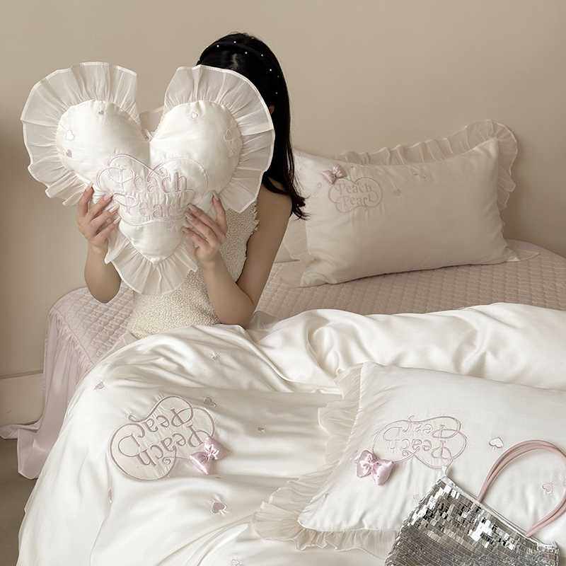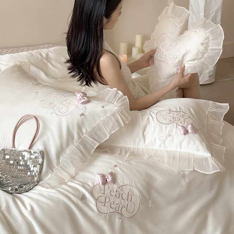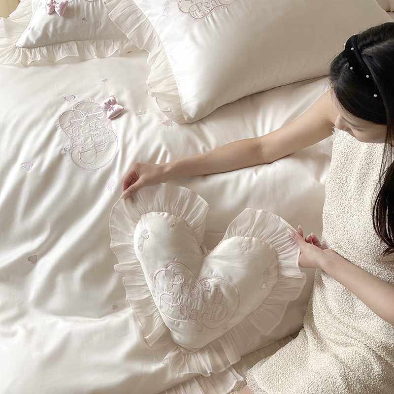 夏季天丝棉贴布刺绣四件套少女心蝴蝶结雪纺褶皱纱被套凉感床品