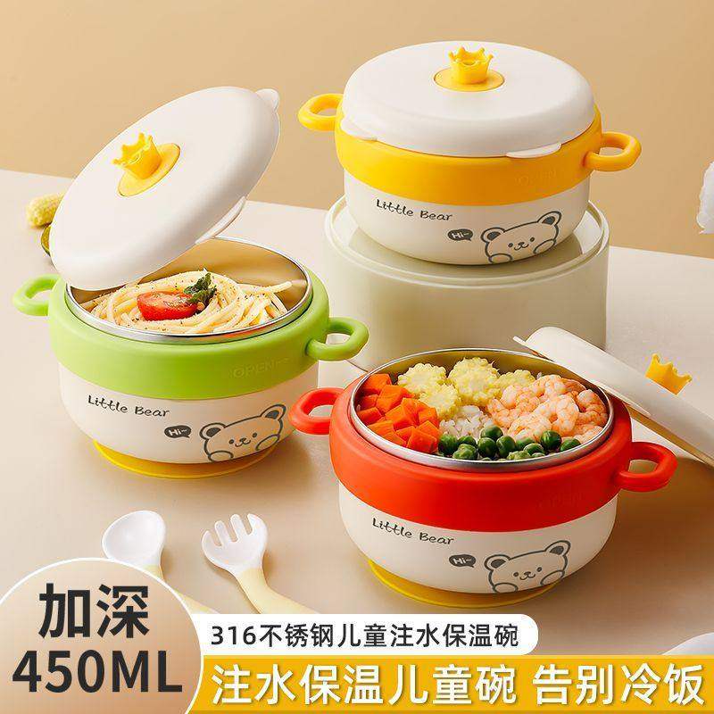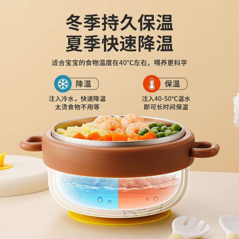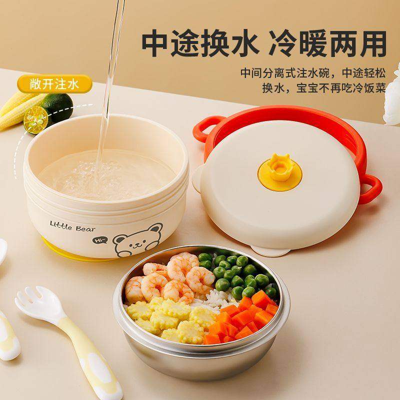 316母婴级不锈钢婴儿辅食碗宝宝吃饭专用恒温注水保温碗儿童餐具