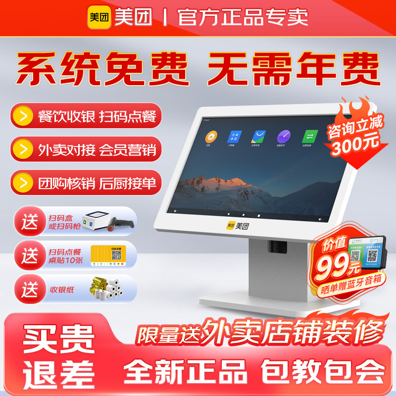 美团收银机收银系统管理一体机扫码点餐触摸屏餐饮奶茶饭店面馆熟食店称重外卖点单机商用点菜机收银系统软件