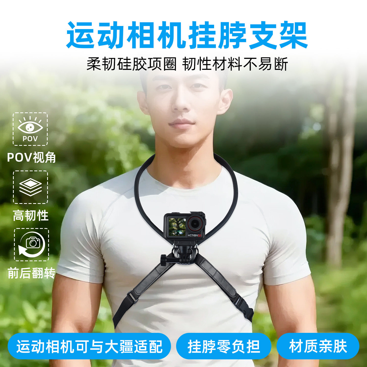 适用大疆action6/5pro/4运动相机pocket3挂脖支架第一人称视角拍摄影石/gopro/山狗适用胸前固定配件全面升级