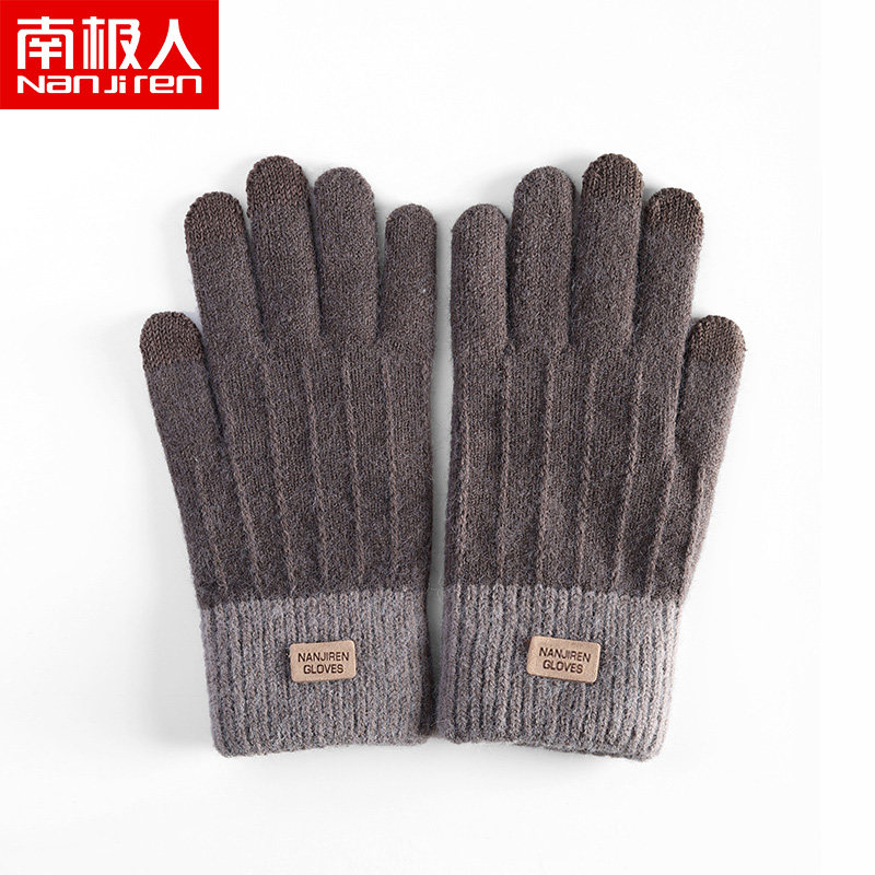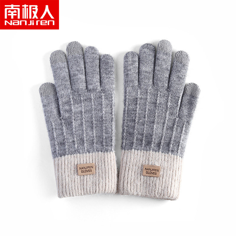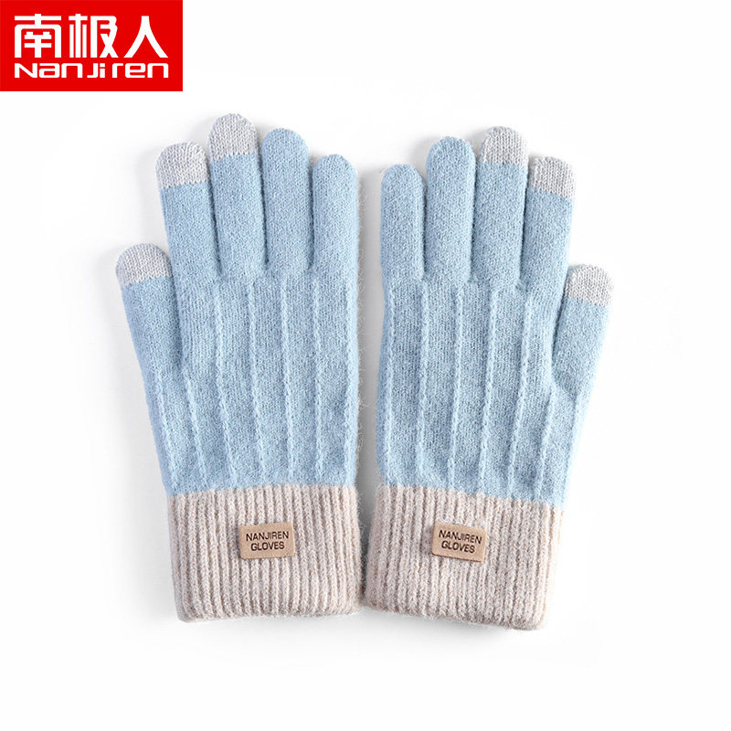 南极人秋冬手套女生拼色毛线针织保暖户外骑车学生防寒加绒骑行H