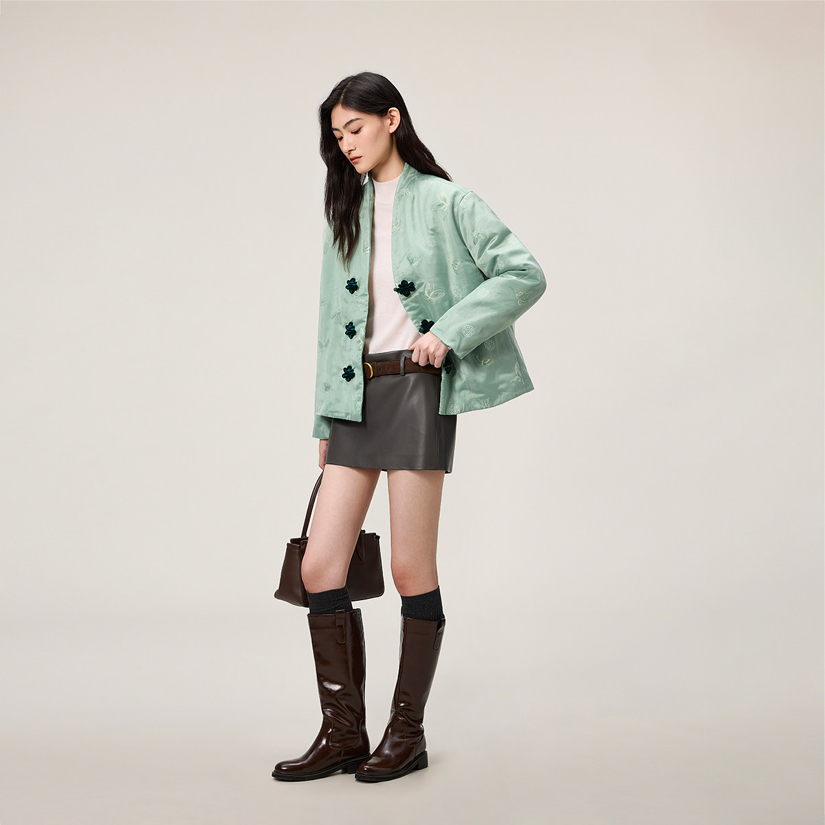 【新品】OCHIRLY欧时力新中式盘扣刺绣缎面新年重工棉服外套26春