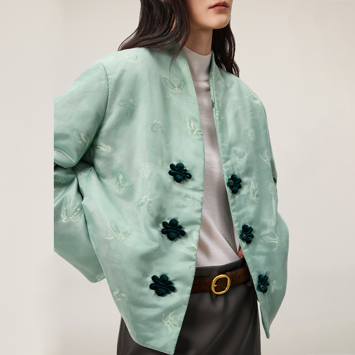 精巧蝴蝶绣,复古丝绒盘扣