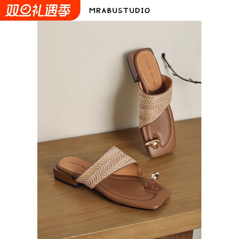 15mins平底凉拖鞋女2025新款夏季法式超火仙女风凉鞋超火一字拖鞋
