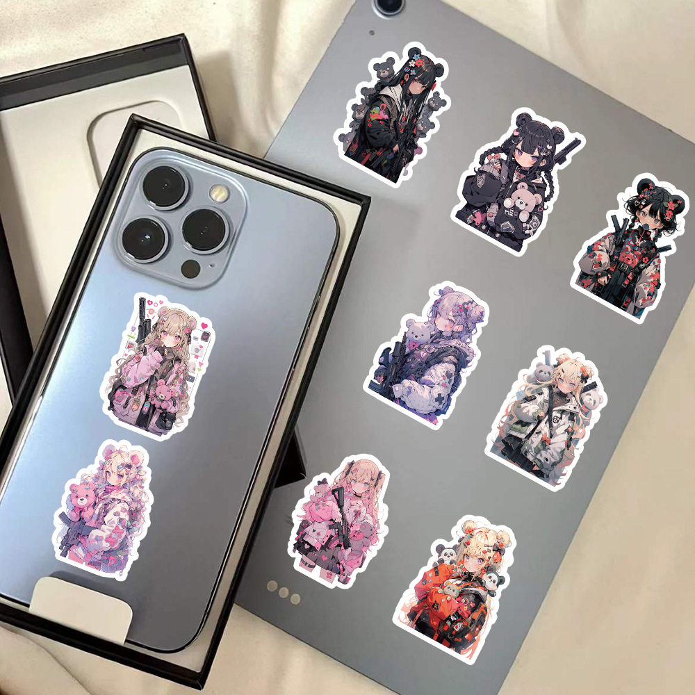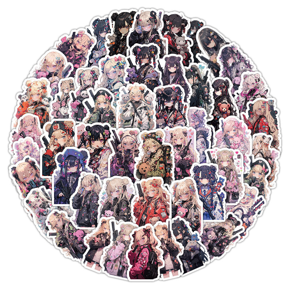 60张原创熊熊杀手卡通贴纸手账装饰滑板车行李箱汽车贴画
