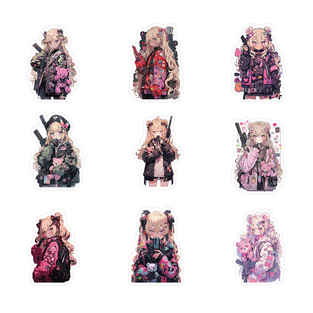 300张女孩贴纸手账卡通ins风PVC儿童粘贴咕卡手机壳透明防水贴画