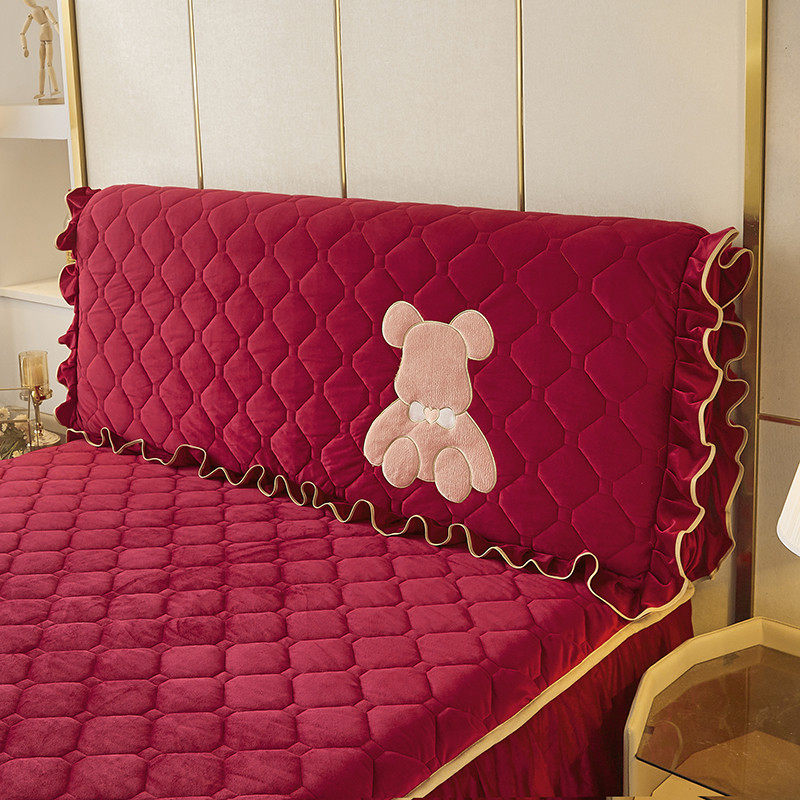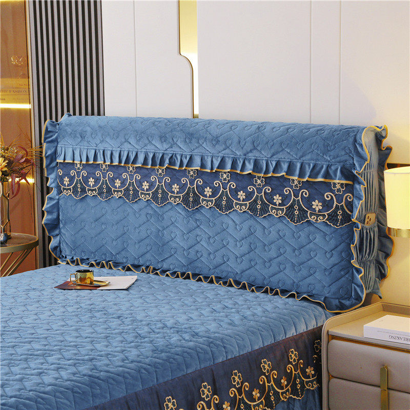 of9d水晶绒床头罩加厚头套软包床刺绣1.8m实木皮床夹棉防尘靠背保