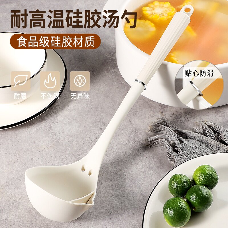 德系汤勺家用长柄硅胶食品级勺子耐高温大号隔滤油专用盛汤粥勺子