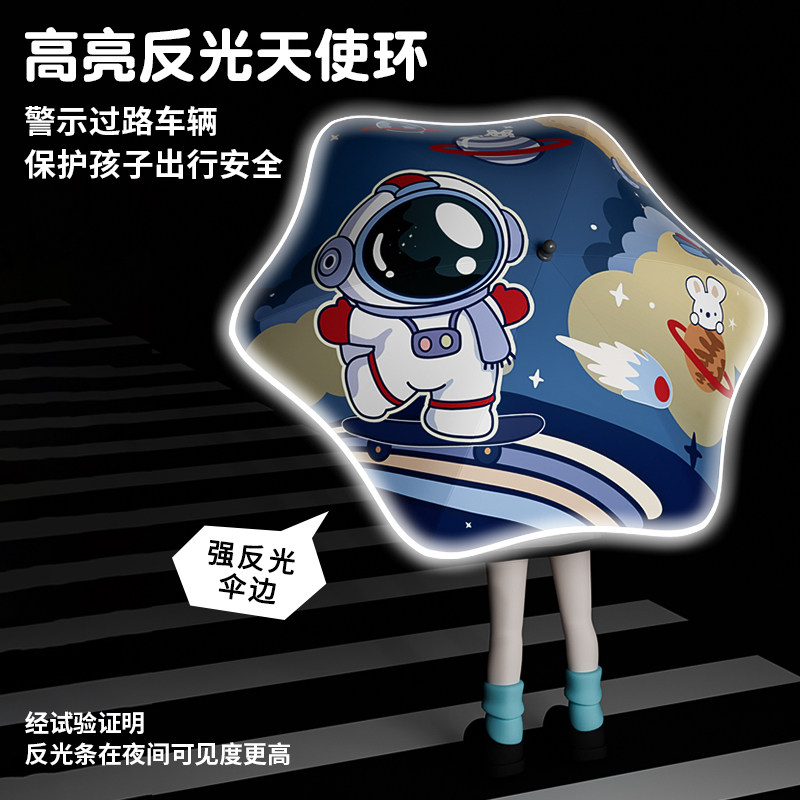 儿童雨伞小学生上学专用安全圆角长柄LED照明伞男女孩晴雨手动伞