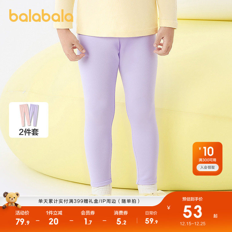 巴拉巴拉男女保暖裤秋季儿童秋裤打底裤小童中大童睡裤纯棉两条装