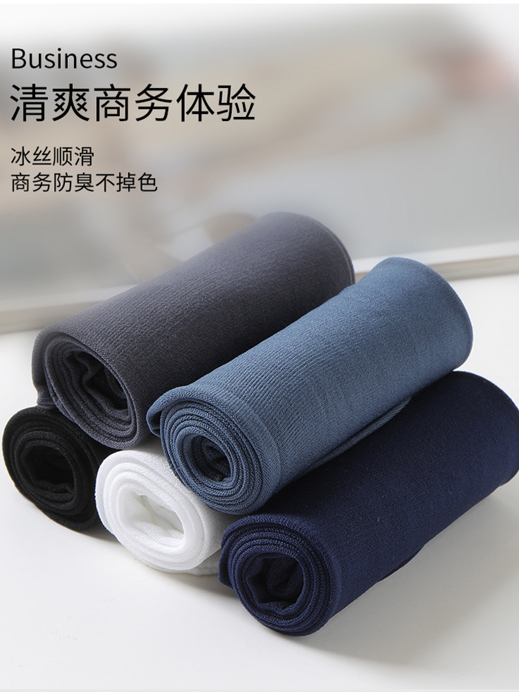 男士丝袜夏季薄款中筒袜冰丝袜透气夏天黑色袜子男长袜吸汗防臭