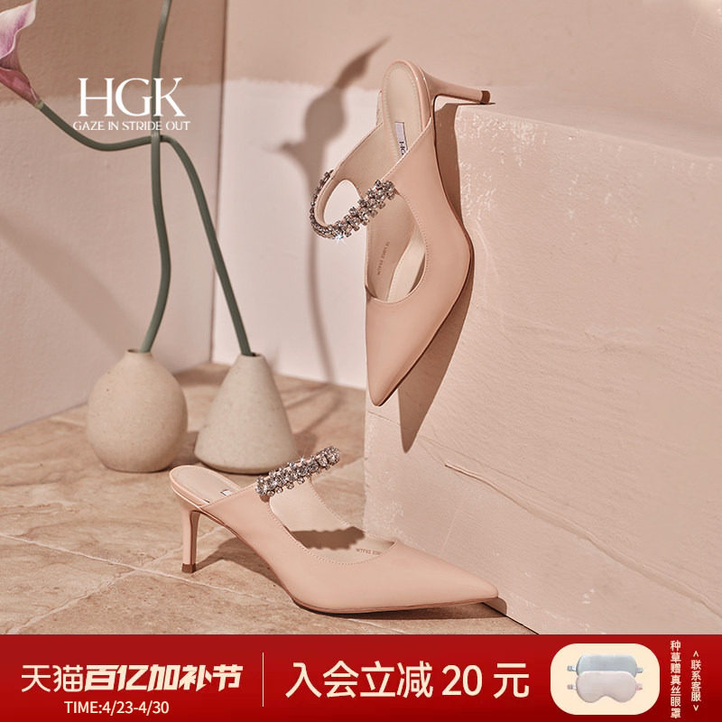 HGK涟漪 一字水晶钻链尖头浅口细高跟时装凉鞋穆勒拖女夏WTF02BH5