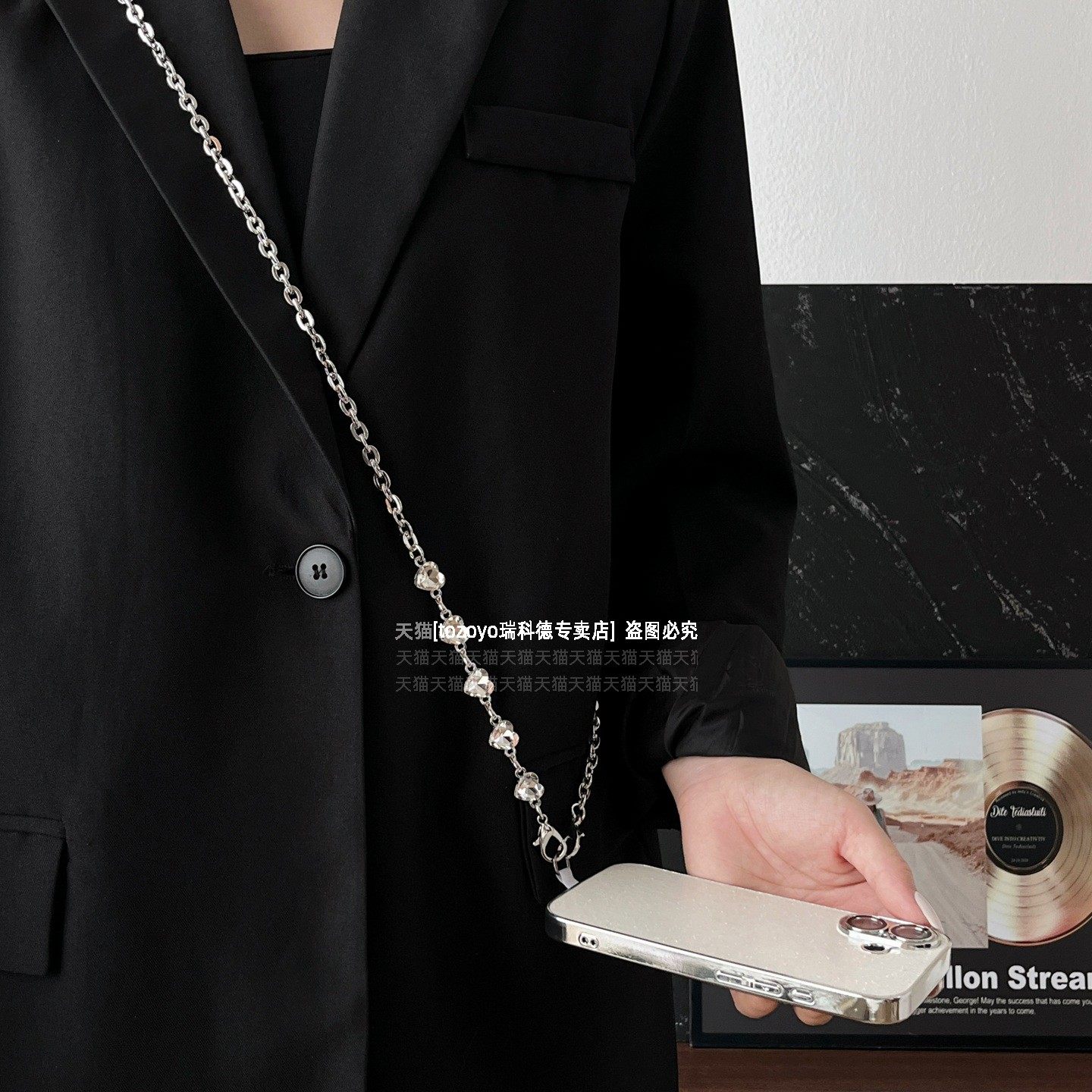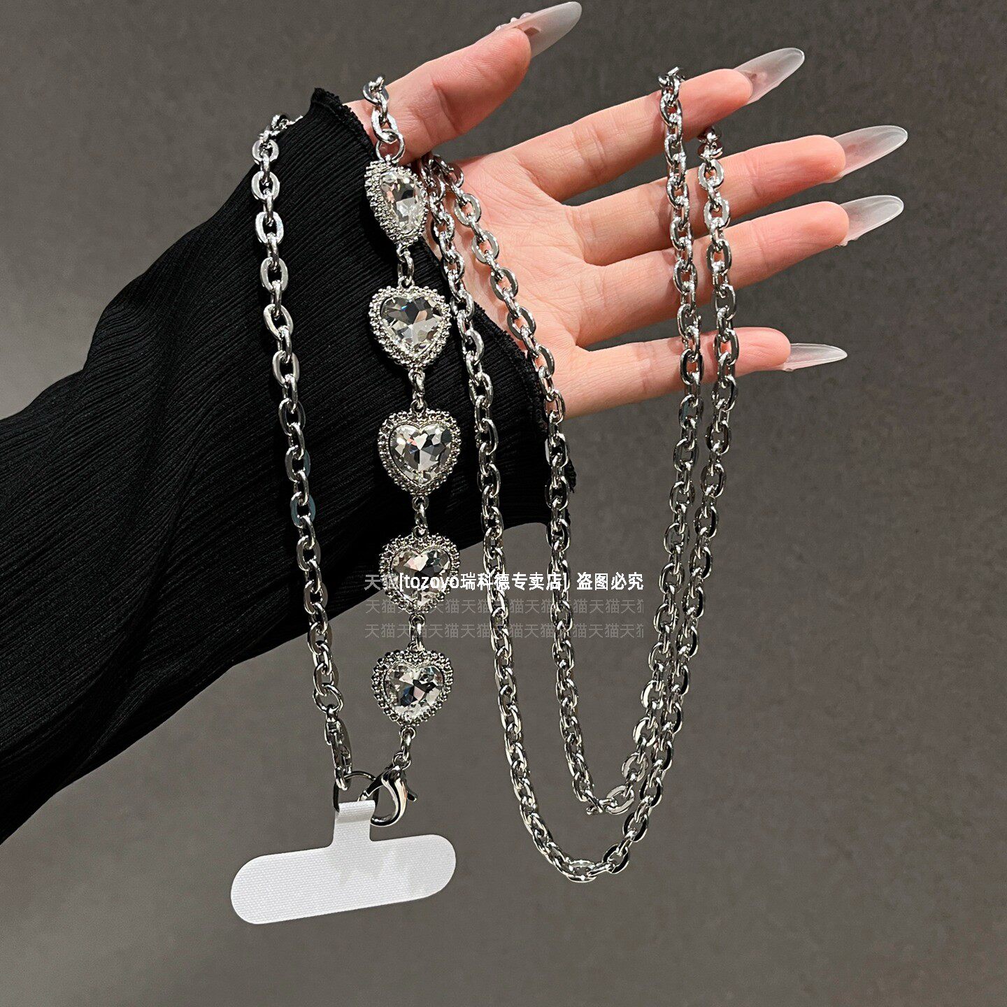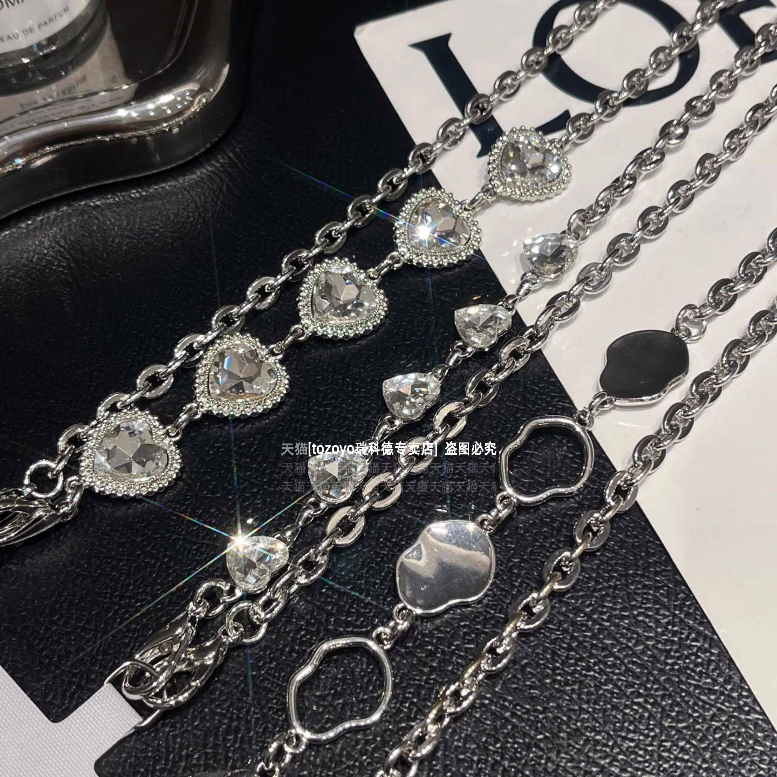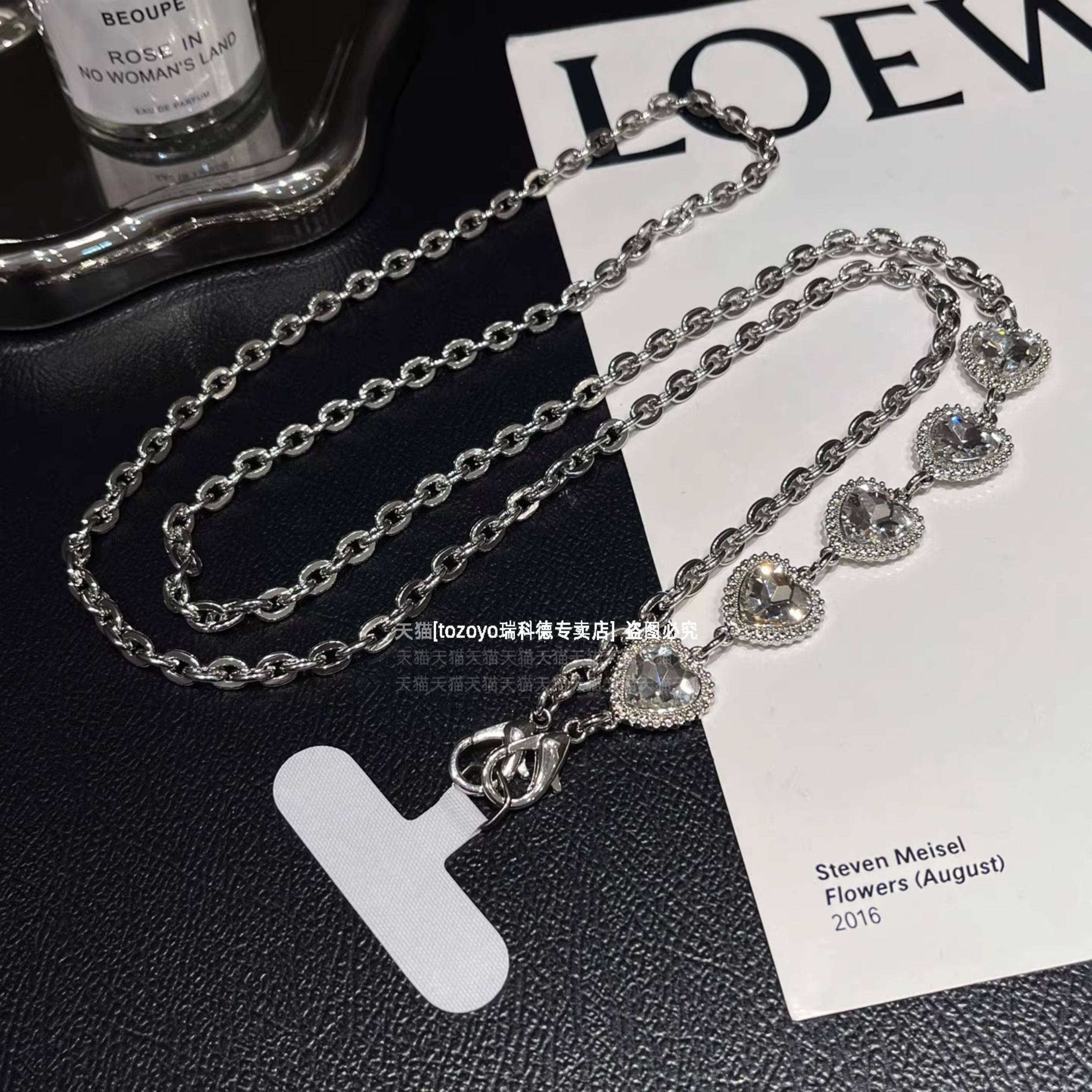 轻奢爱心钻金属手机链超闪精致背带链条高级感银色斜挎挂链斜背包包挂饰防丢挂绳高端名媛挂件闪钻艺术新款壳