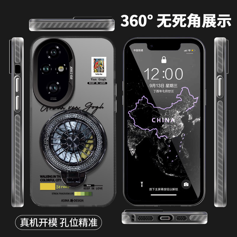 R都市梵高适合荣耀200pro手机壳男荣耀100/90/80陀螺支架荣耀70pro创意高级感超薄荣耀magic5/x50防摔保护套