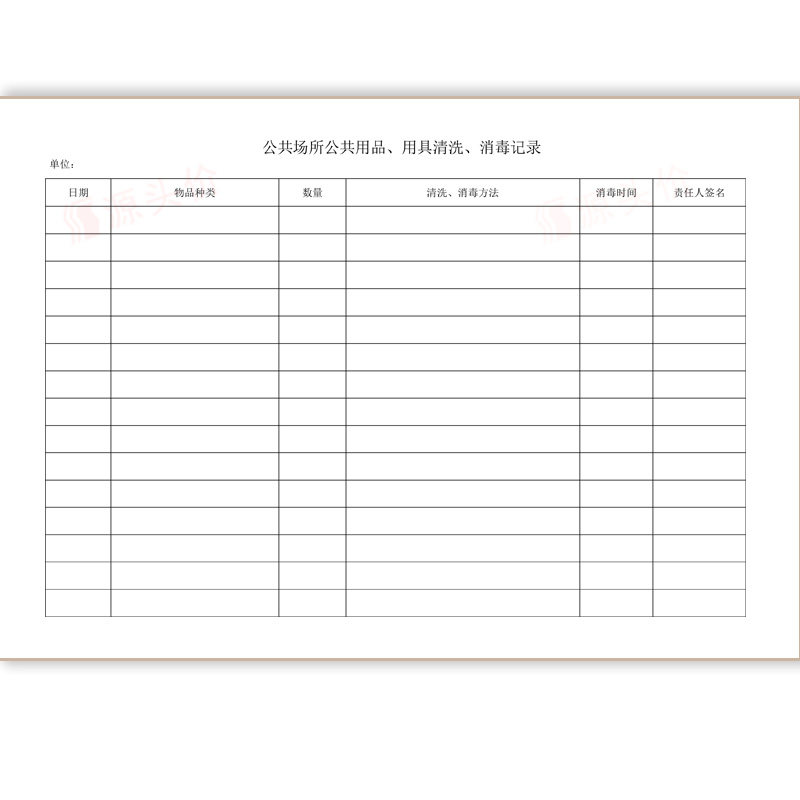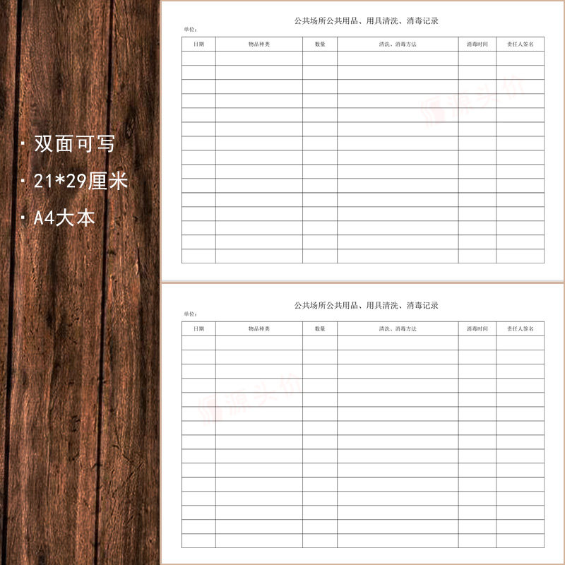 公共场所公共用品用具清洗消毒记录表场所设施沐浴消毒灭菌美容本