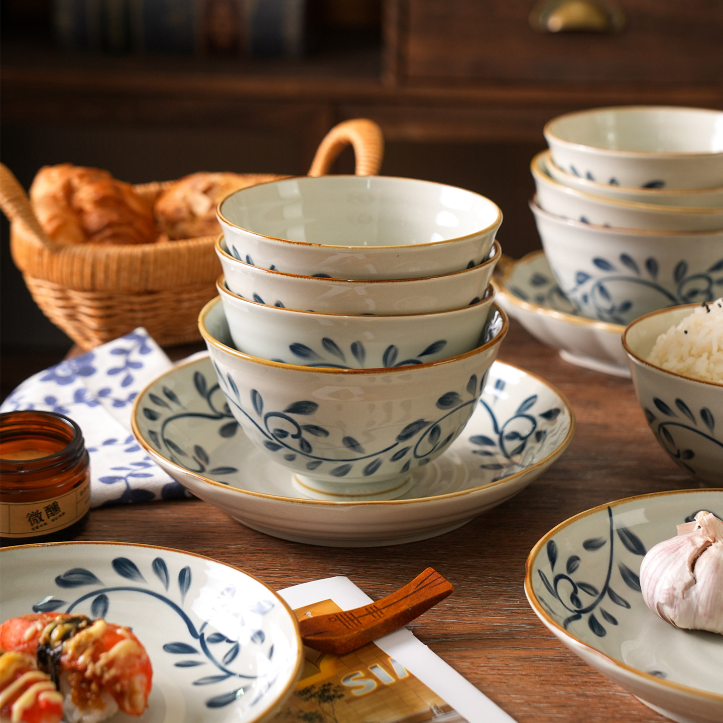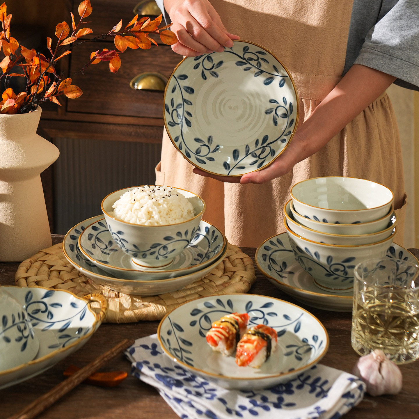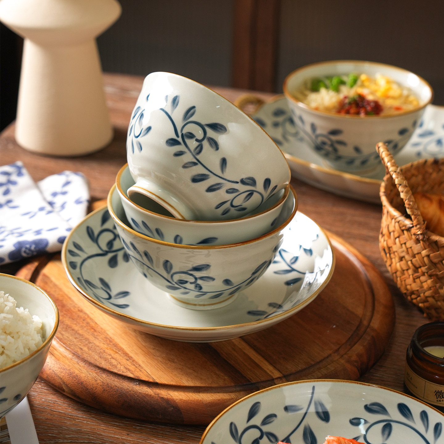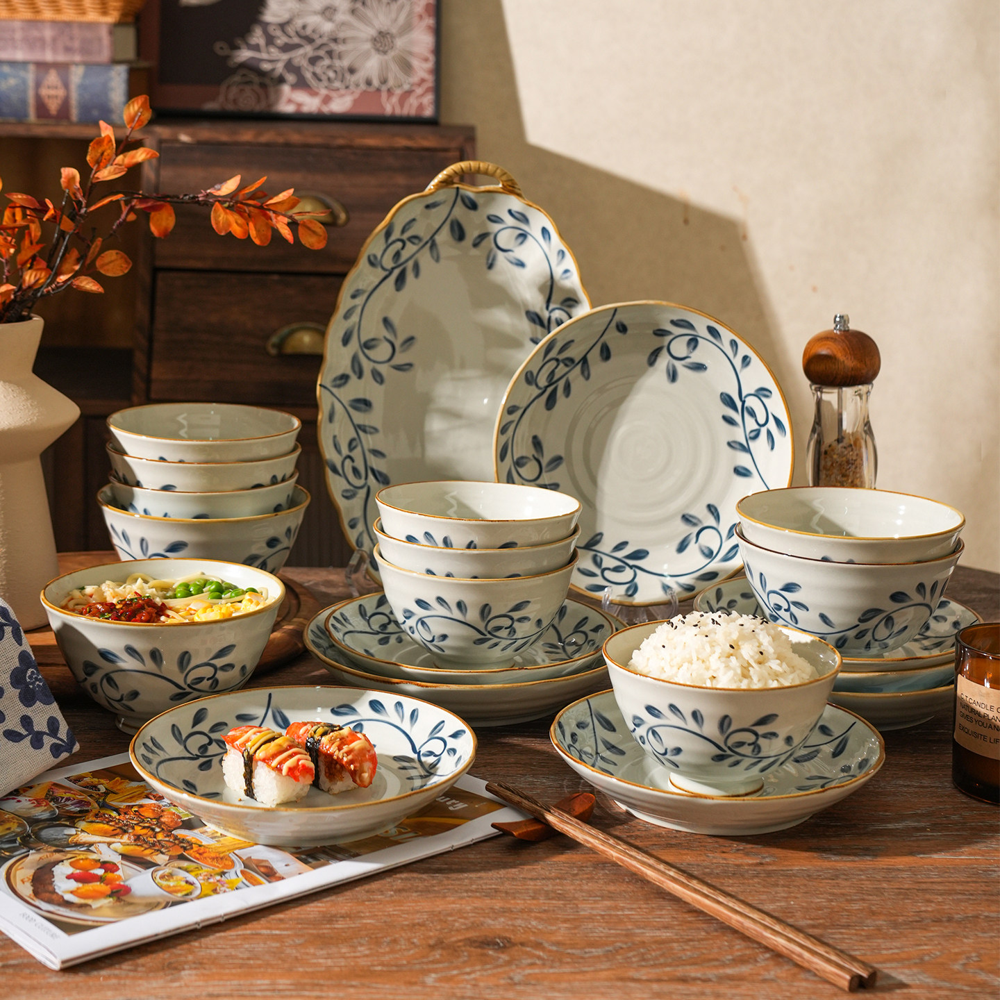 舍里高级感釉下彩碗盘组合复古碗碟套装家用米饭碗菜盘餐盘吃饭碗