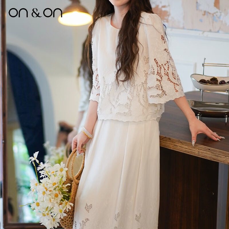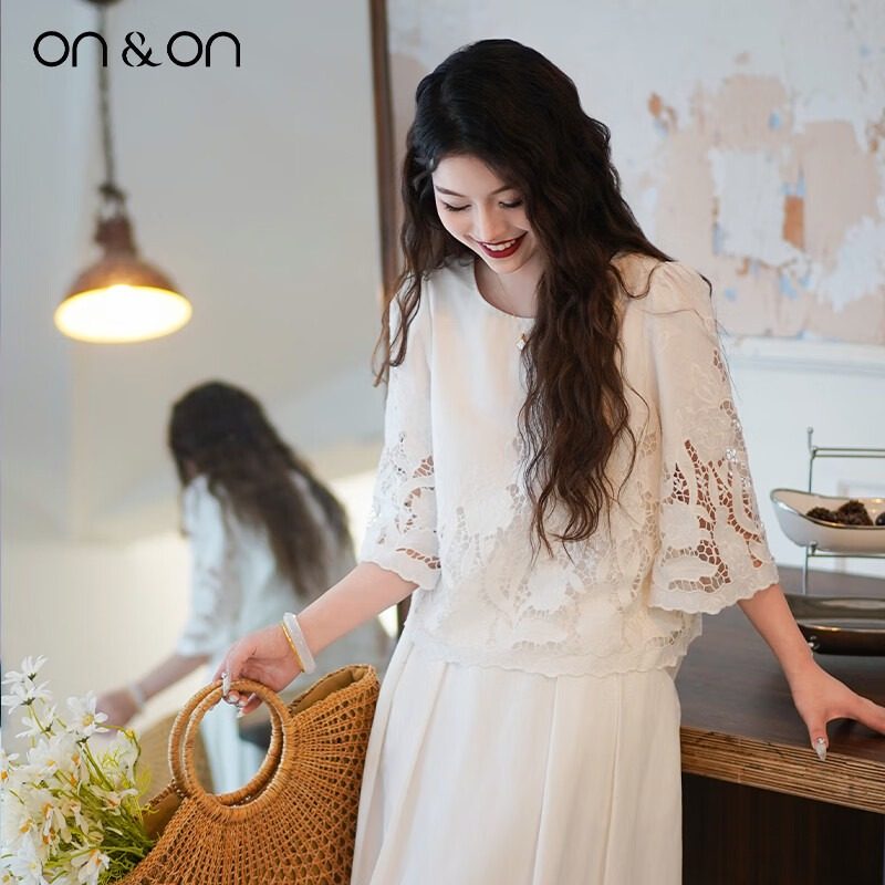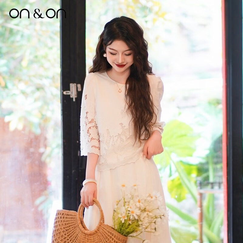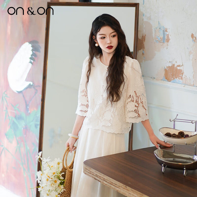 ON&ON/安乃安2025秋季优雅镂空绣花小衫+刺绣半裙套装小个子可穿
