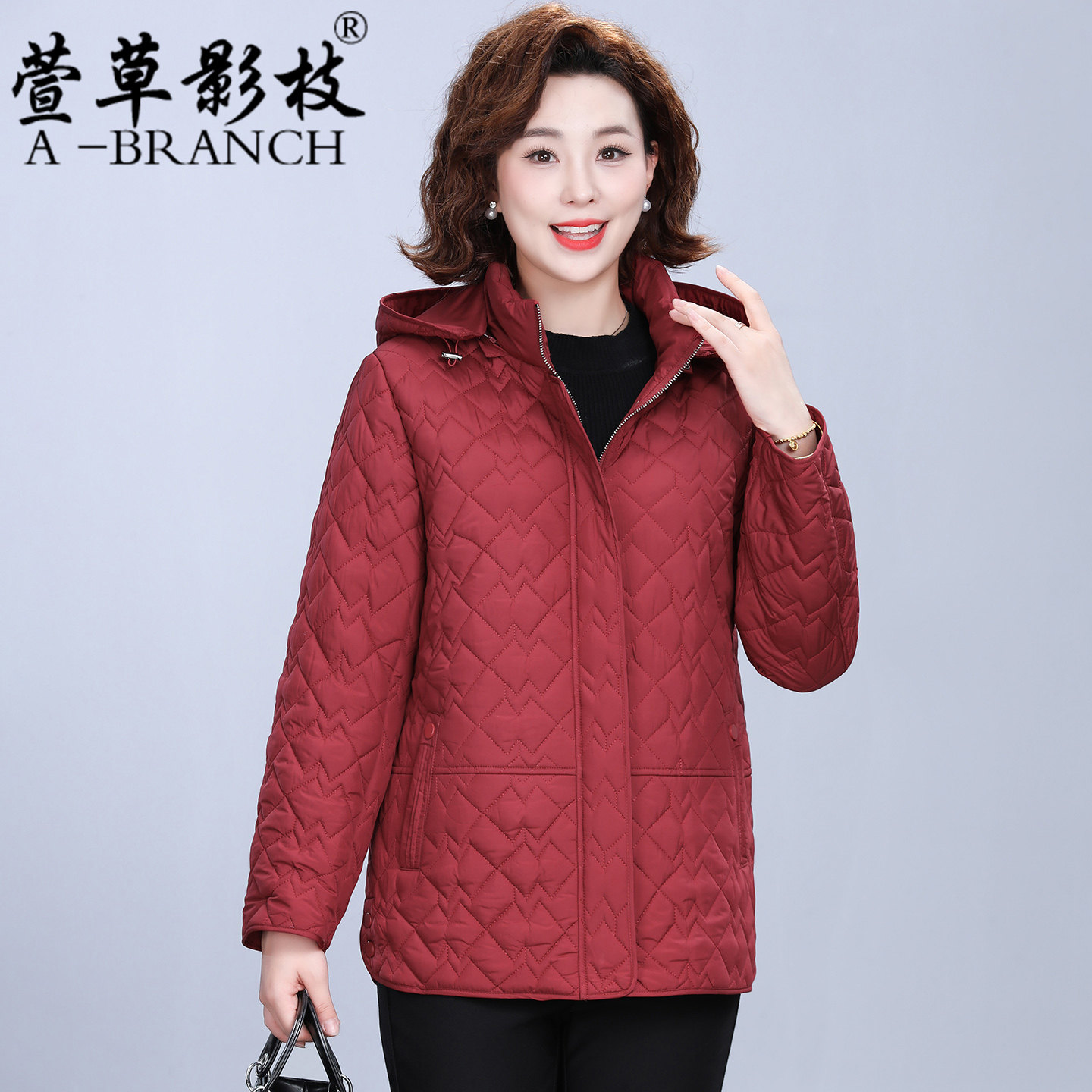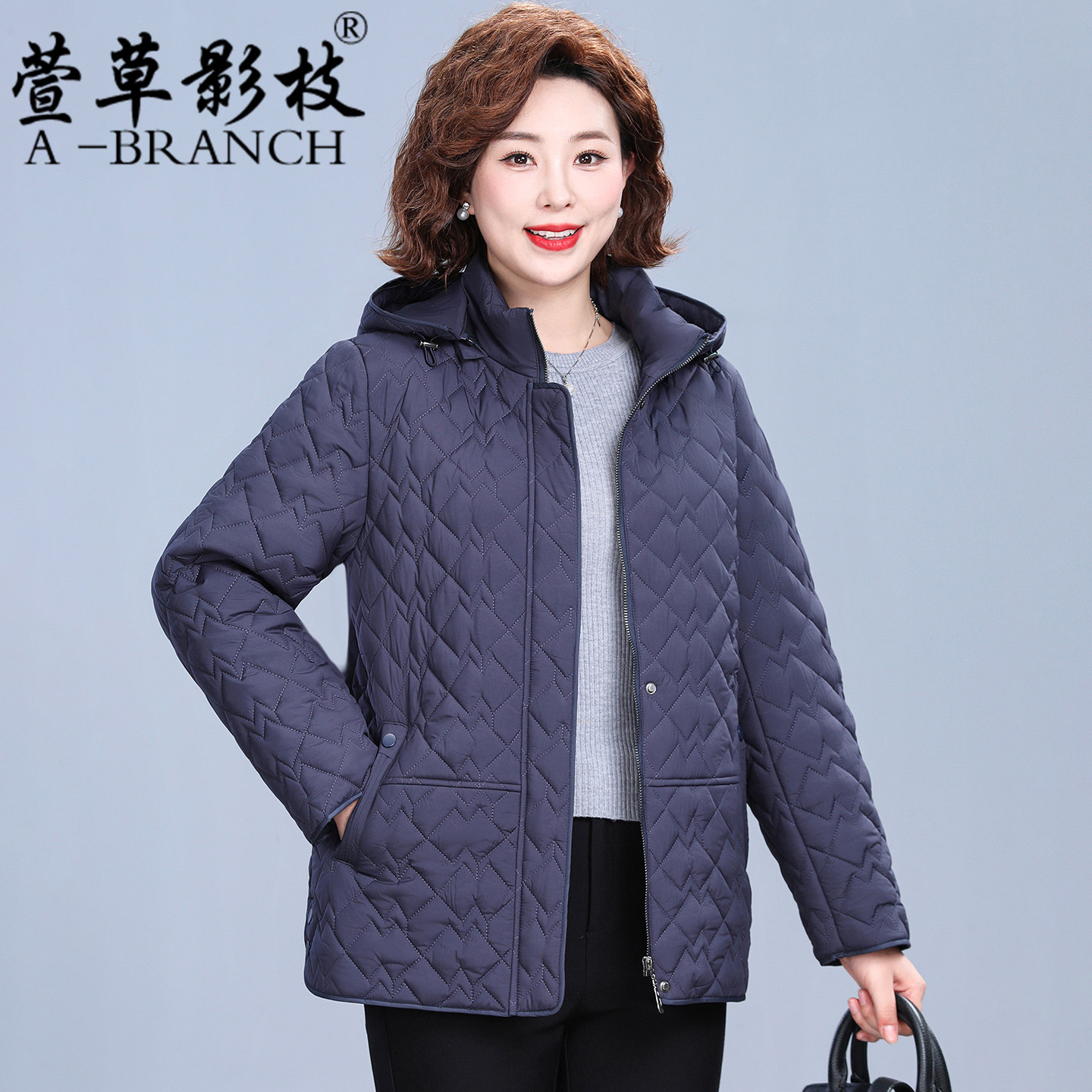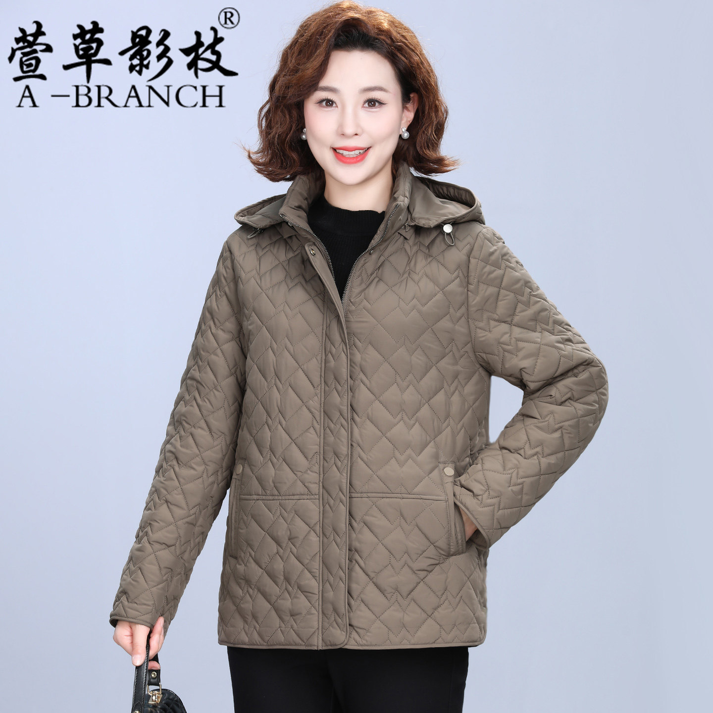 妈妈冬装洋气连帽羽绒服短款中年女时尚大码外套中老年保暖厚棉袄