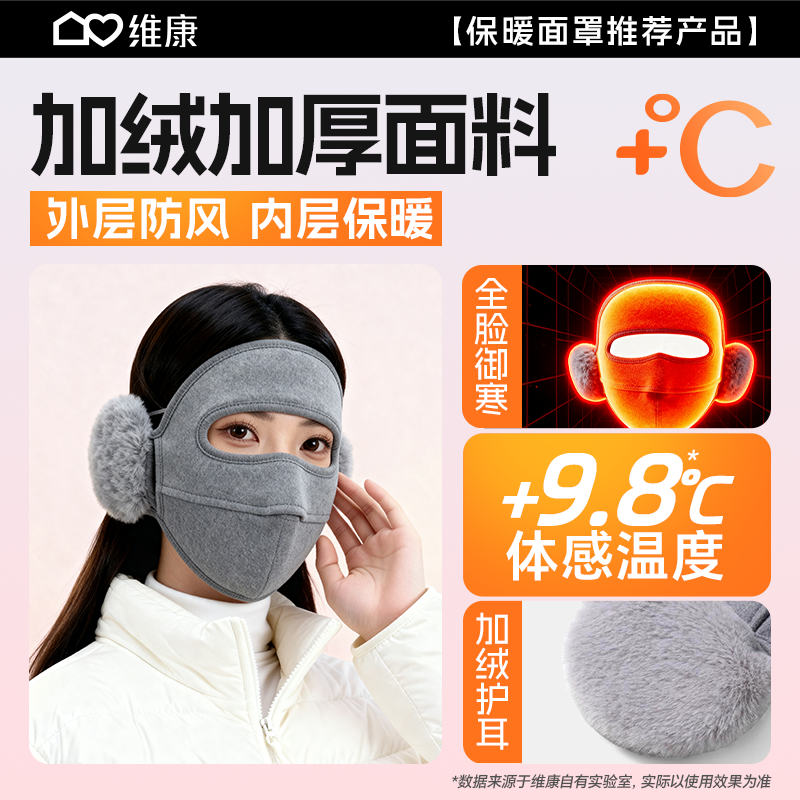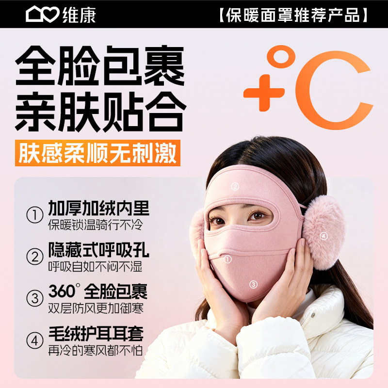 维康骑行防风面罩女冬防寒保暖加厚脸罩全脸护耳口罩脸基尼0193D