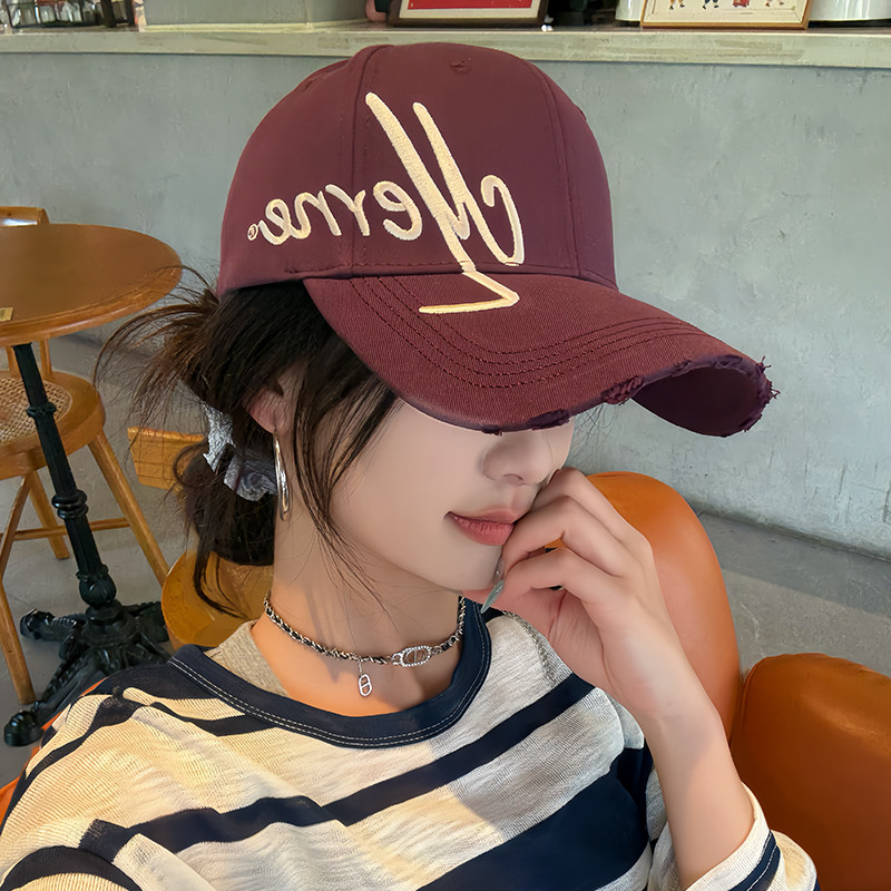 酒红色大头围帽子棒球帽大脸显脸小宽帽檐女加大加深顶红色鸭舌帽