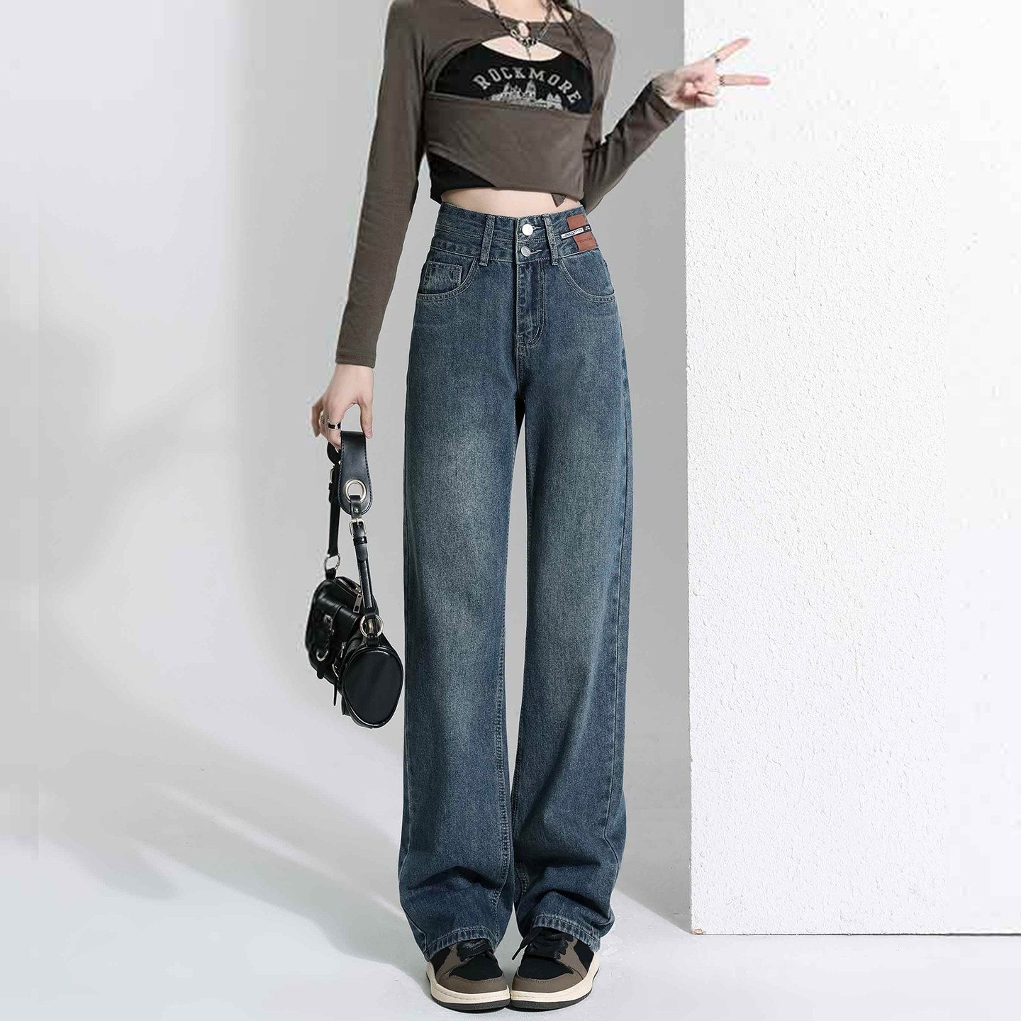 四面弹丹宁色牛仔阔腿裤25年新款宽松显瘦牛仔长裤89173