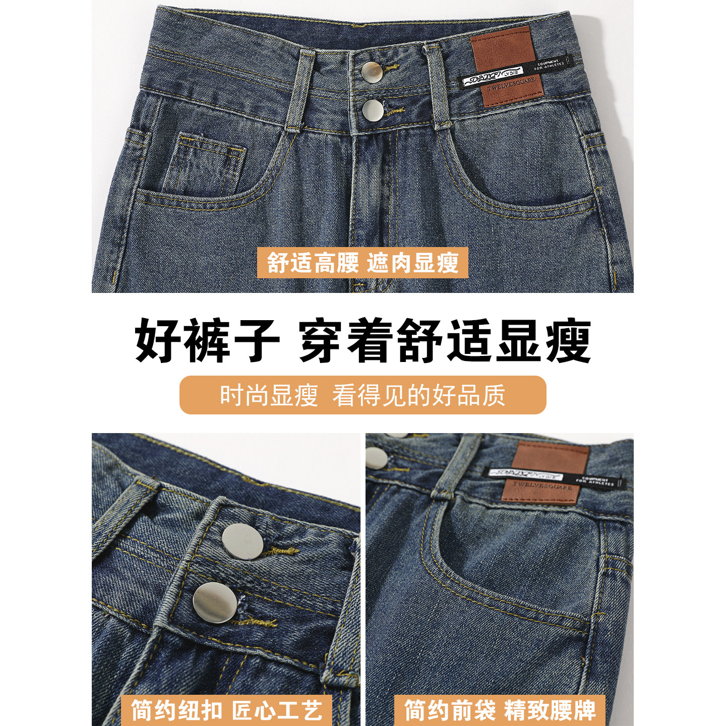 王家有鱼秋季新款2025复古蓝微喇牛仔裤中高腰不贴腿显瘦裤子女款