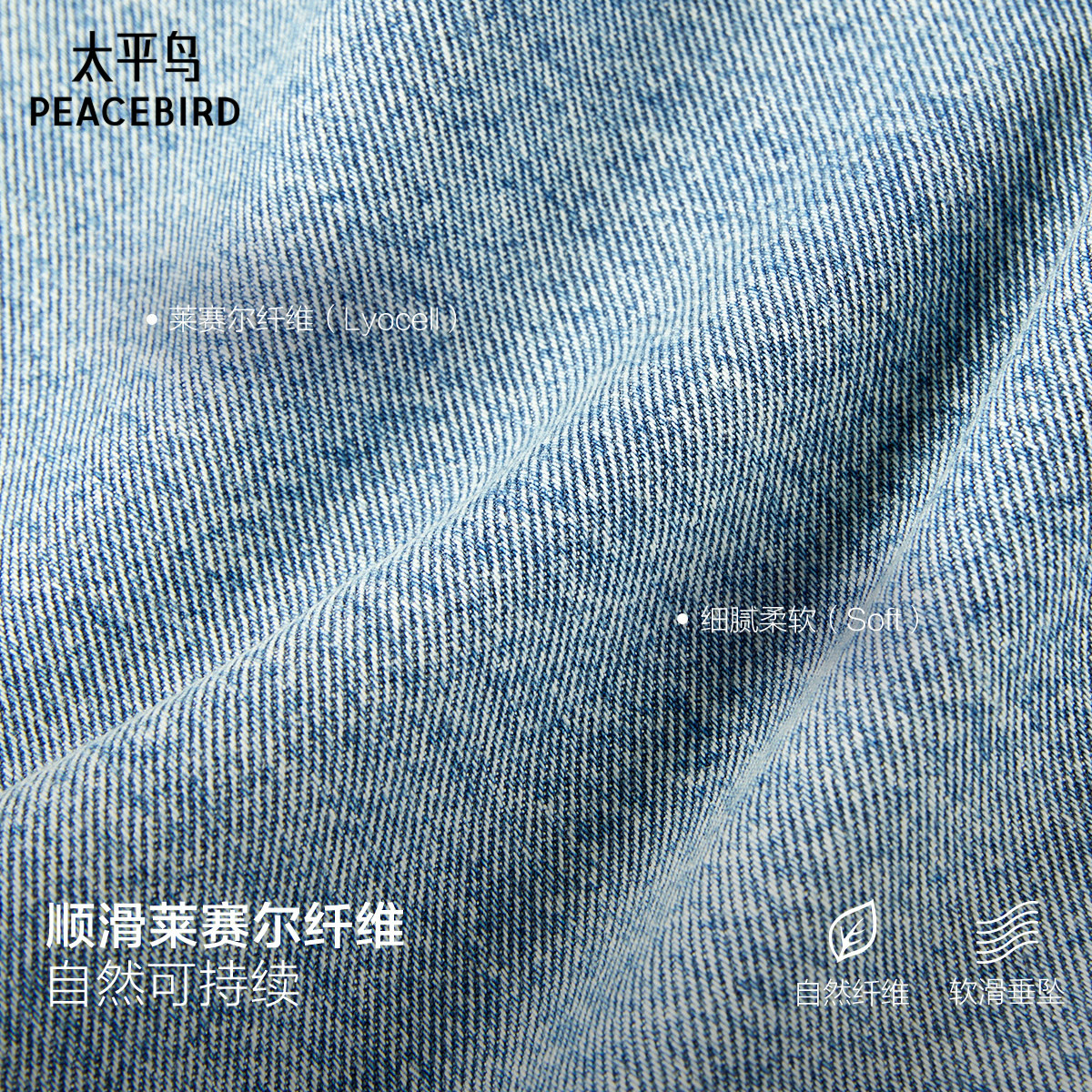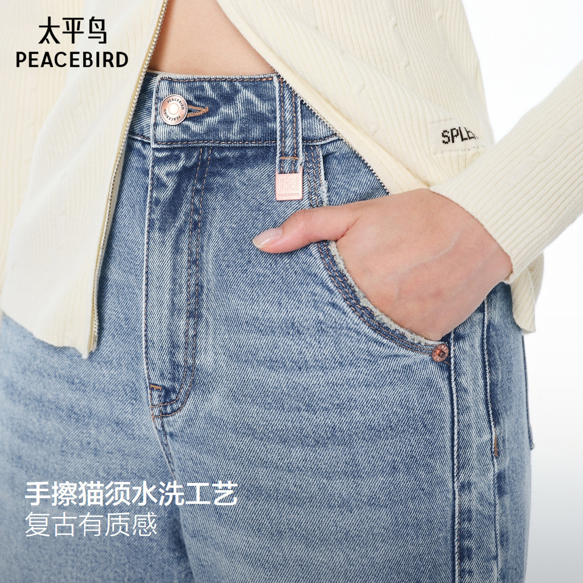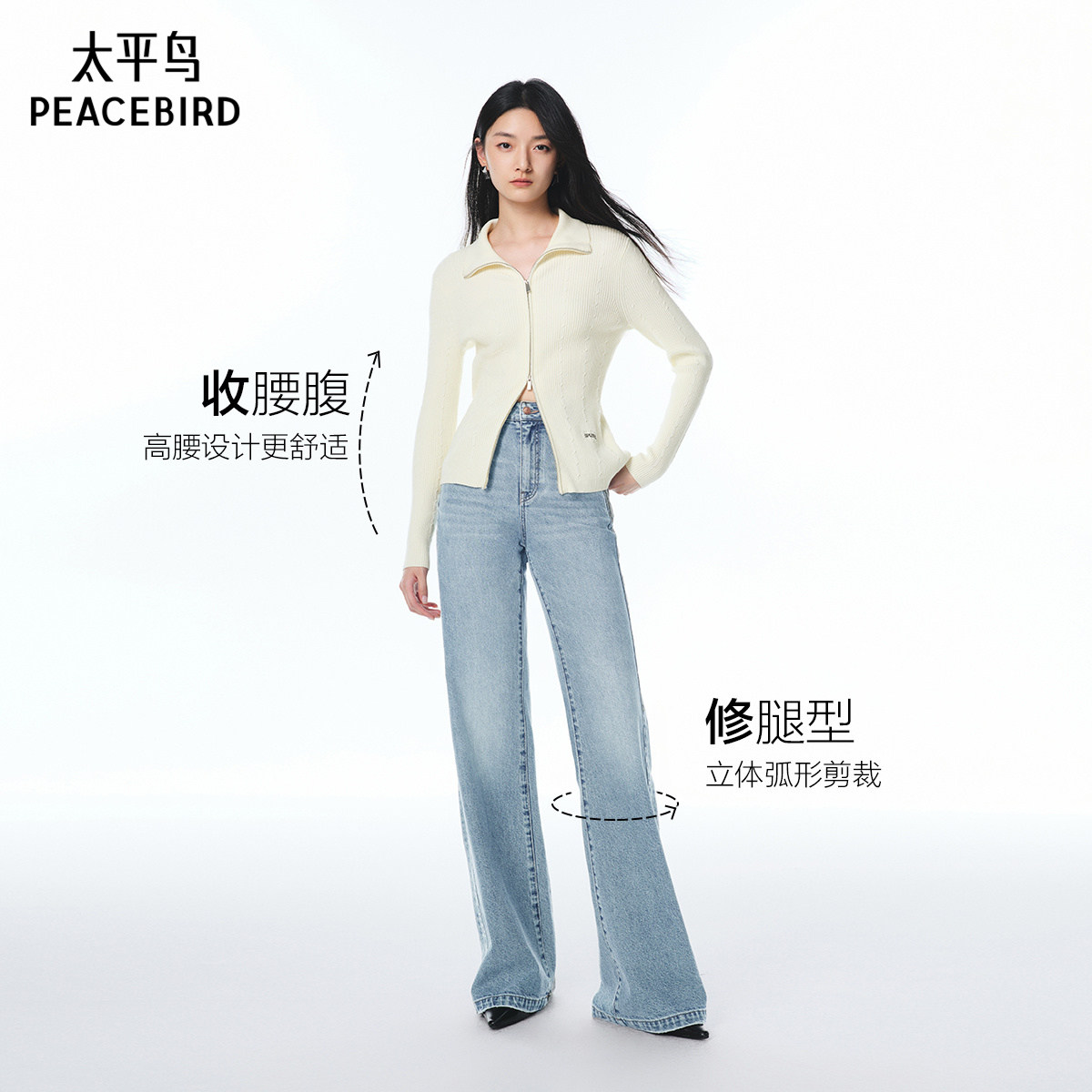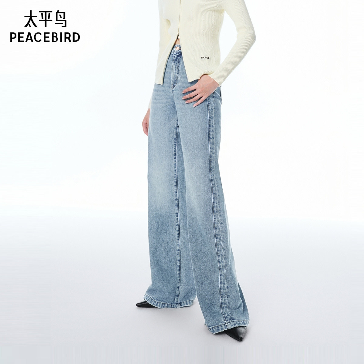 太平鸟高腰阔腿喇叭牛仔裤25年秋季新款宽松廓形直筒微喇牛仔裤*