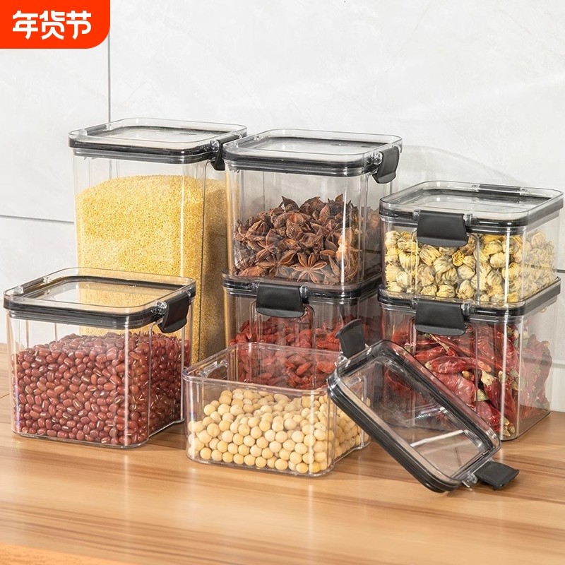 密封罐食品级储存收纳盒透明塑料厨房香料豆子坚果五谷杂粮储物罐