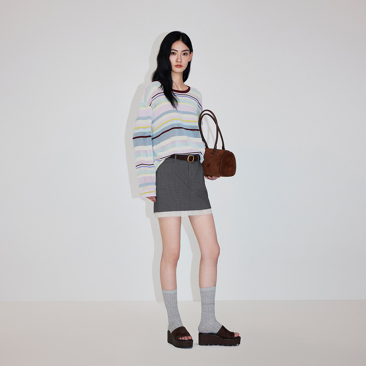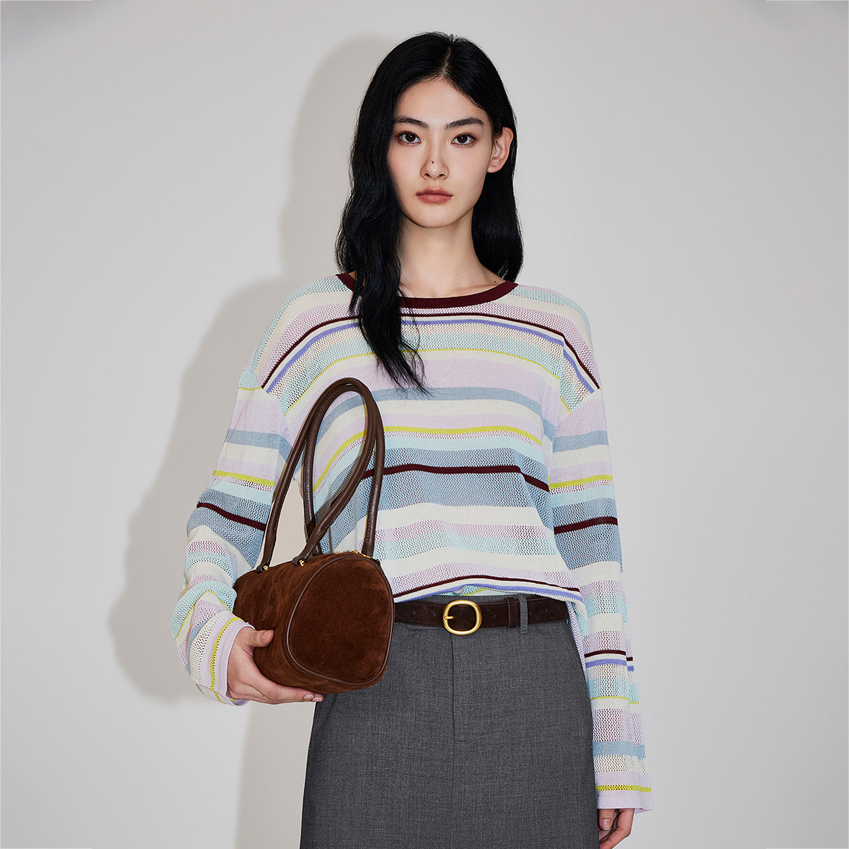 【新品】OCHIRLY欧时力 莱赛尔亚麻条纹针织衫宽松透气2026春季